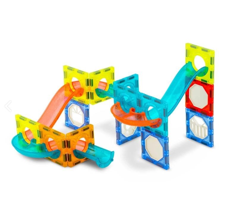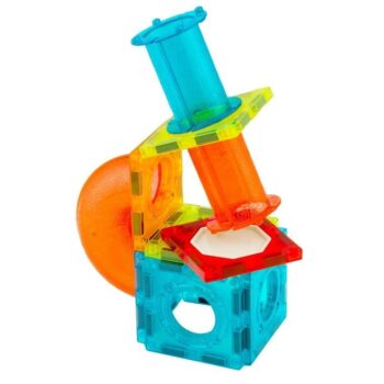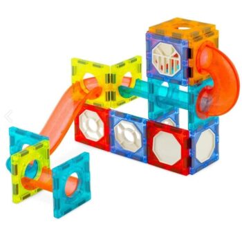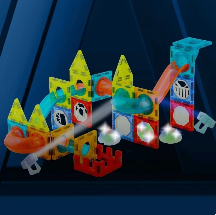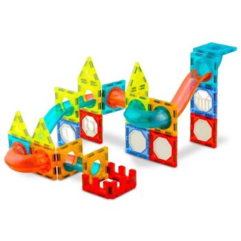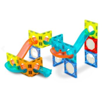 Mega priljubljene magnetne kocke, ki združujejo zabavo in učenje. Komplet s 49 deli vključuje magnetne kocke in tire z do šestnajstimi kroglicami ter dve električni strukturi – panoramsko kolo z glasbo in dvigalo. Vsi deli imajo na robovih močne magnete, ki se povezujejo z drugimi deli kompleta, in so združljivi s ploščicami Connetix.