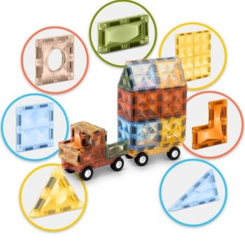 13 Mega priljubljene magnetne kocke, ki združujejo zabavo in učenje. Razvijajo otrokovo ustvarjalno mišljenje , hkrati pa jezikovne, kognitivne, motorične, socialne in čustvene spretnosti . 12 Magnetni bloki učijo ustvarjalnega mišljenja, opremljeni so z močnimi magneti, ki omogočajo nešteto kombinacij. Pastelne barve spodbujajo vizualno zaznavanje in opazovalne sposobnosti. Popoln komplet za male graditelje. 3 Značilnosti: Velik komplet – 100 kosov magnetnih kock