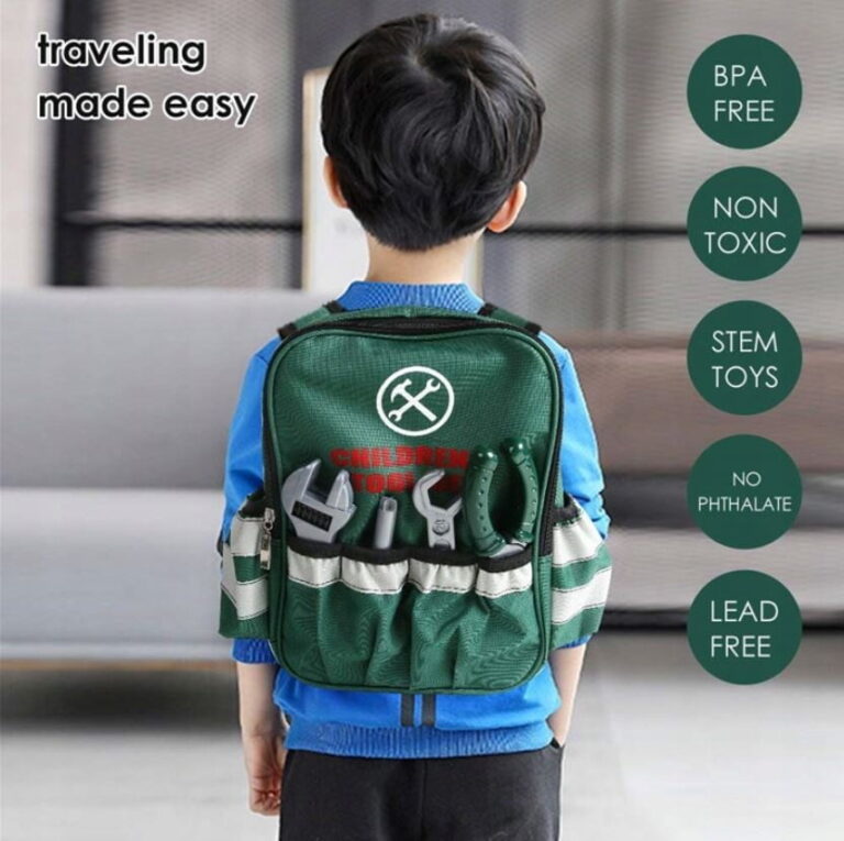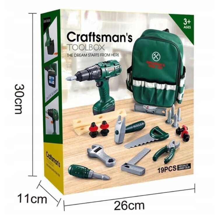 Otroški komplet orodja z nahrbtnikom – Craftsman Ali vaš otrok rad pomaga očetu pri popravilih? Se rad imenuje pravi mali mojster? Ali uživa v tem, da sam popravlja stvari po hiši? Če ste na vsaj eno od teh vprašanj odgovorili z “da”, potem imamo idealen komplet za vašega malega mojstra. Naš otroški komplet orodja Craftsman spodbuja ustvarjalnost in na zabaven način razvija motorične sposobnosti, poleg tega pa je priložen tudi praktičen nahrbtnik, tako da ga lahko vaš malček preprosto in enostavno nosi s seboj povsod. 🙂