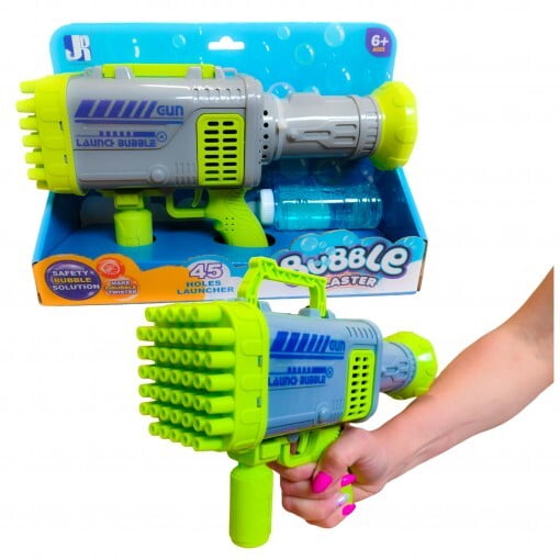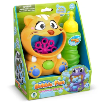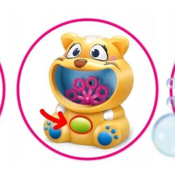 Poleg tega bo proizvedla več mehurčkov na minuto, kot jih vaš otrok lahko postavi 🙂 Je enostavna za uporabo in priporočljiva za otroke, starejše od 3 let. Igračo napajata 2XAA bateriji, ki nista priloženi paketu. Dimenzije igrače: 10,5 x 7 x 13 cm Komplet vsebuje tudi tekočino za mehurčke, ki jo preprosto vlijete v tigrova usta, pritisnete gumb in zabava se lahko začne. 🙂