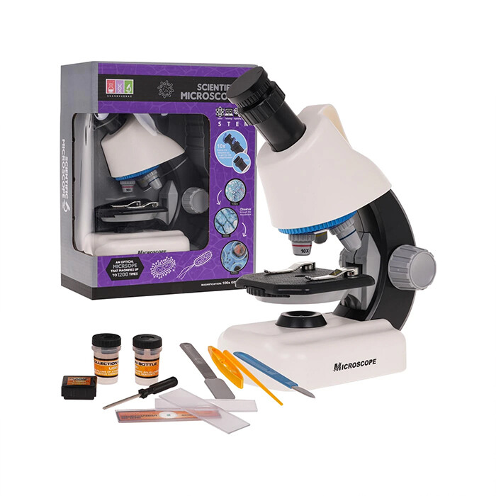 Beli mikroskop za mlade raziskovalce je izobraževalni komplet za otroke, stare 6 let in več , ki želijo raziskati skrivnosti narave in mikrosveta. Mikroskop, izdelan iz visokokakovostnih materialov, omogoča opazovanje predmetov s povečavo do 1200x . Komplet ne vključuje le mikroskopa, temveč tudi bogat nabor dodatkov , kot so epruvete , pripravljeni preparati , stekelca , pinceta in škatla za shranjevanje predmetov . To vašemu otroku daje vse, kar potrebuje za začetek svoje znanstvene pustolovščine . Ta igrača ni le zabavna, ampak tudi poučna, saj ga uvaja v fascinanten svet mikrobiologije.