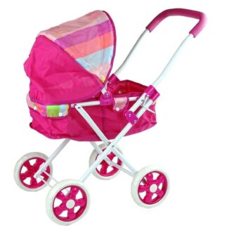 Voziček je popolna igrača za deklice, ki želijo skrbeti za svoje punčke. Ima štiri kolesa, ki omogočajo enostavno manevriranje tudi po neravnih površinah. Voziček je rožnate barve, streha pa ima pisane črte. Kot dodaten bonus je voziček tudi zložljiv, tako da ga lahko enostavno spravite v avto in ga vzamete s seboj na družinski izlet.