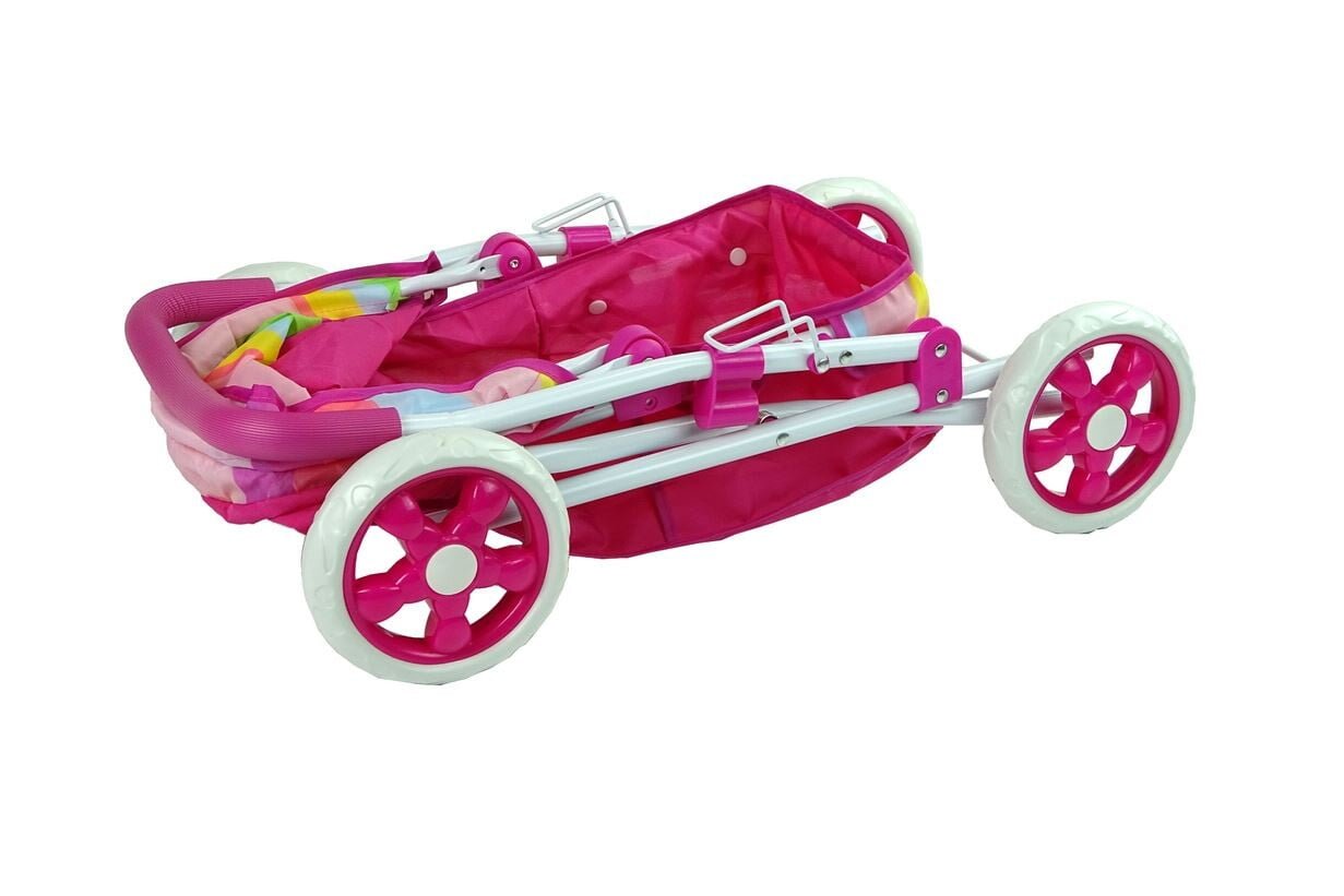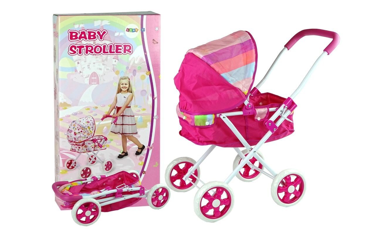 Voziček je popolna igrača za deklice, ki želijo skrbeti za svoje punčke. Ima štiri kolesa, ki omogočajo enostavno manevriranje tudi po neravnih površinah. Voziček je rožnate barve, streha pa ima pisane črte. Kot dodaten bonus je voziček tudi zložljiv, tako da ga lahko enostavno spravite v avto in ga vzamete s seboj na družinski izlet.