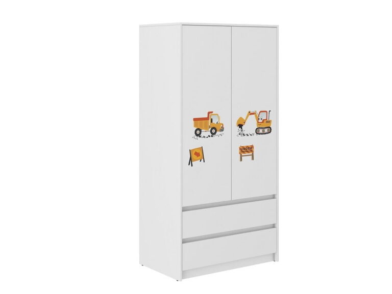 Otroška garderobna omara z izbiro različnih motivov. Spredaj s tiskom. Hrbtna stran omare je bele barve. Robovi – obdelani z visokokakovostnim PVC materialom visoke kakovosti. Mehanska in kemična odpornost. Okvir in sprednja stran – laminirana plošča. Dimenzije: 180cm x 90cm x 51cm. Dimenzije embalaže: 1335x560x70mm (1/3) 27kg. 1170x575x90mm (2/3) 28kg. 1310x490x50mm (3/3) 14kg. Država porekla: EU.
