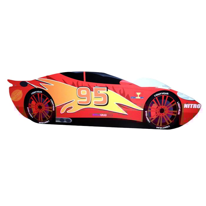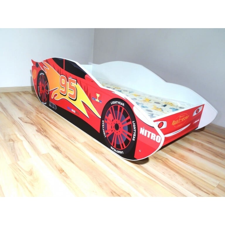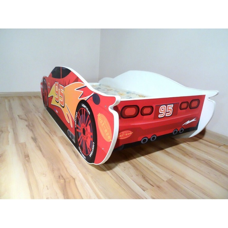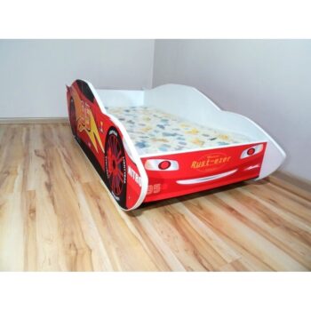 Otroška postelja v obliki dirkalnika 140×70 Če imate doma majhnega ljubitelja te pravljice, mu bo ta postelja zagotovo všeč, saj bo vsako otroško sobo naredila privlačnejšo, vplivala na ustvarjalnost in možnosti igre. Ko se zvečeri, se bo vaš malček z veseljem umiril in zaspal. PVC furnir, ki ga uporabljamo v naši postelji, je mehak in prožen ter ne poškoduje nežne otrokove kože, saj nima ostrih robov kot tipičen furnir za pohištvo.