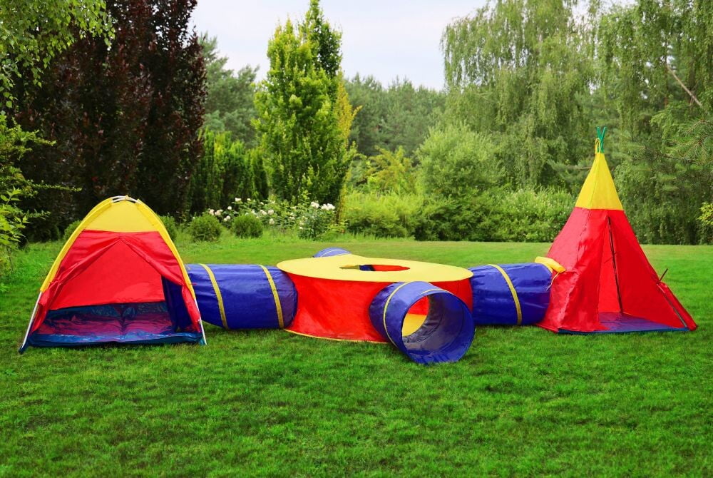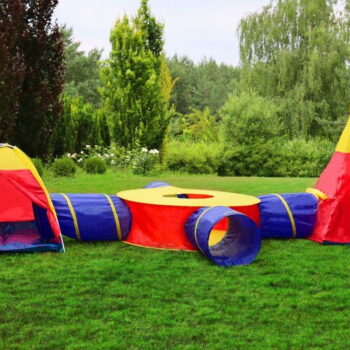 Otroški šotor primeren za igro v hiši, na vrtu ali na terasi, Stene šotora so izdelane iz barvnih materialov, Vsak element lahko samostojno izvedete v poljubni obliki, CE certifikat, Starost: 3+, Dimenzije: 112 x 112 x 94 cm, DIMENZIJE PREDORA: premer 48 x 90 cm (4 kosi), DIMENZIJE WIGWAMA: 100 x 100 x 135 cm, DIMENZIJE POVEZOVANJA: premer 140 x 50 cm, MATERIAL: 100% poliester