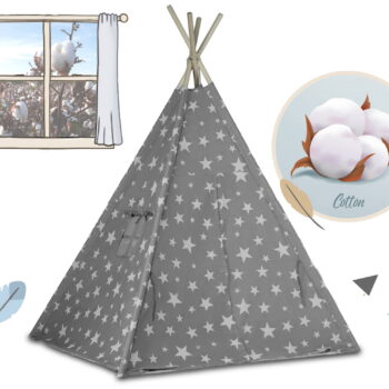 TIPI šotor wigwam za otroke TEEPEE Blazine Svetilke Prevleka Nukido Odtenki sive in srebrne
