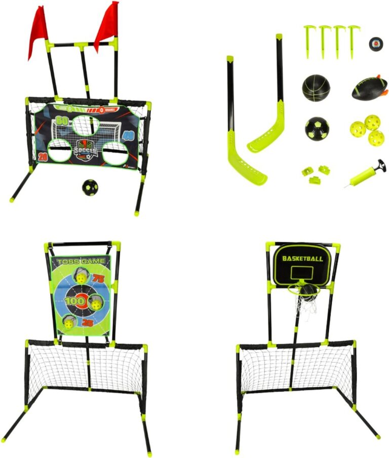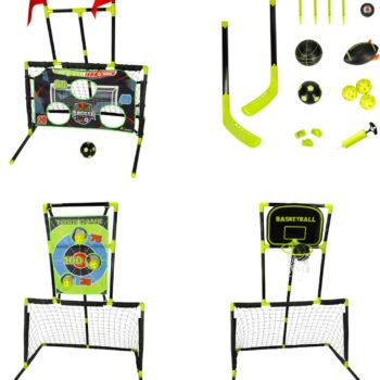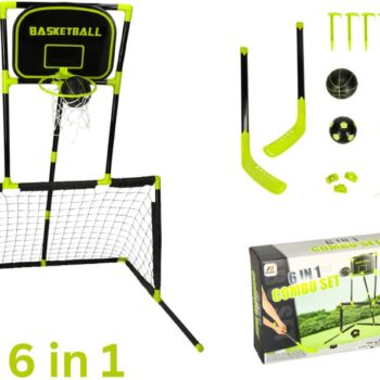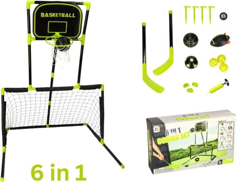 Playos 6v1 športni gol/košarka (črno-zelen) je modularni komplet, ki otrokom omogoča vadbo več športov v eni igri: nogometa, košarke, hokeja na travi, ragbija in preciznih iger (streljanja in metanja). Konstrukcija je izdelana iz plastike, hitro se sestavi in razstavi , zahvaljujoč modularni zasnovi pa se komplet enostavno preoblikuje glede na to, kaj se tisti dan igra.
