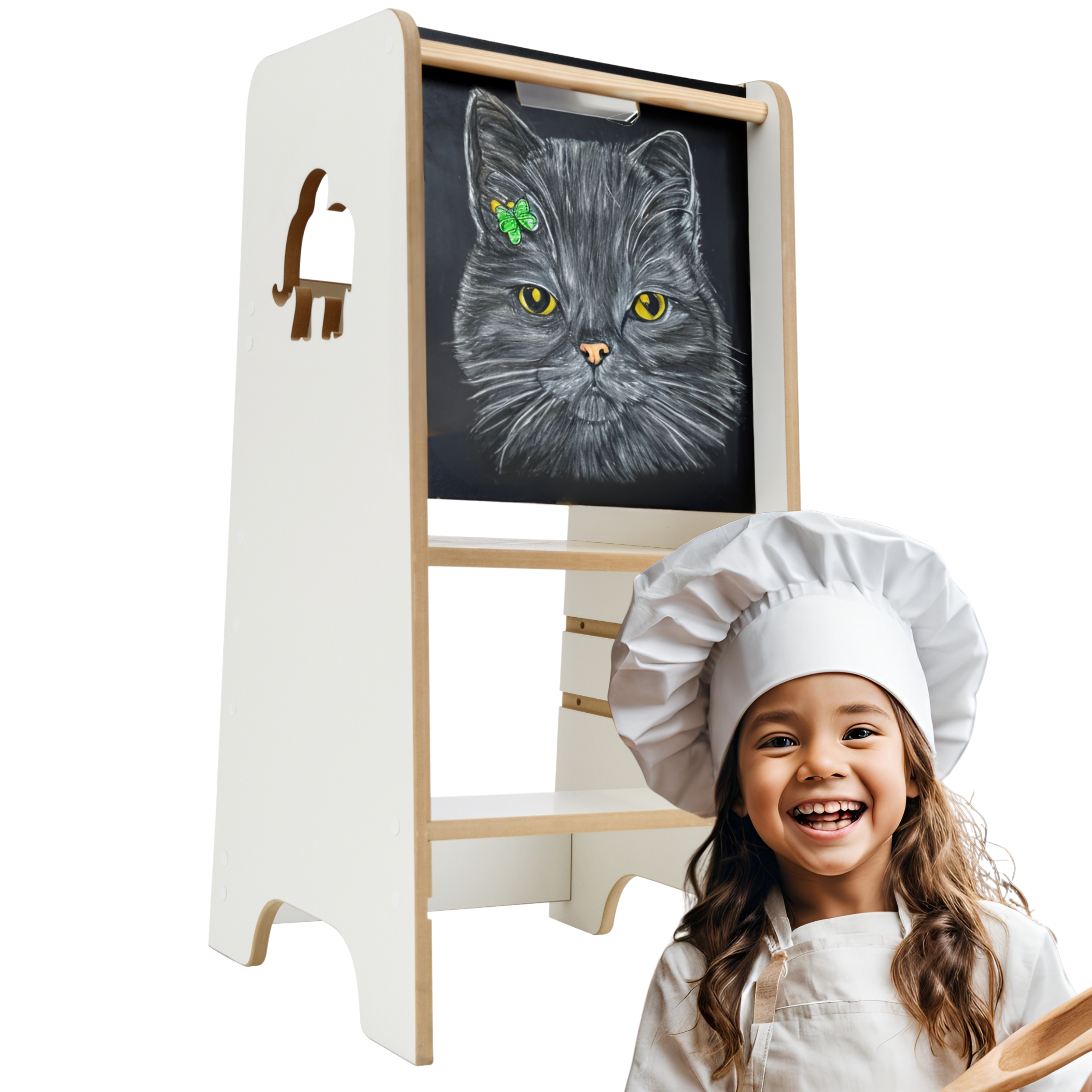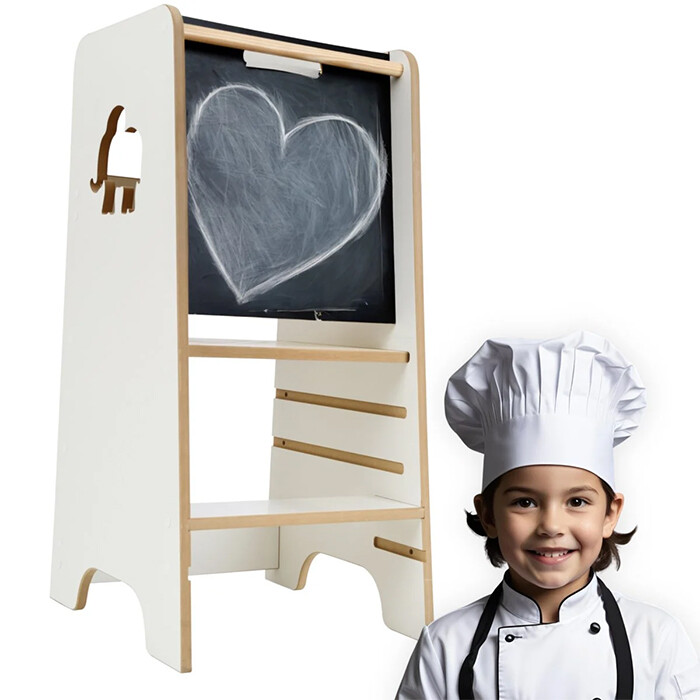 proizvodnja Kuhinjski pomočnik za otroke, ki ga mora imeti vaš bodoči Masterchef v kuhinji 🙂 Zahvaljujoč nastavljivi višini učnega stolpa vam bo vaš otrok lahko pomagal pri pripravi obrokov že od malih nog. Med skupnim kuhanjem se bo vaš otrok med drugim lahko učil in spoznaval: imena zelenjave, sadja, kuhinjskih pripomočkov, jedi, okusov in še veliko več, hkrati pa bo razvijal motorične sposobnosti (tako imenovane fine motorične sposobnosti).