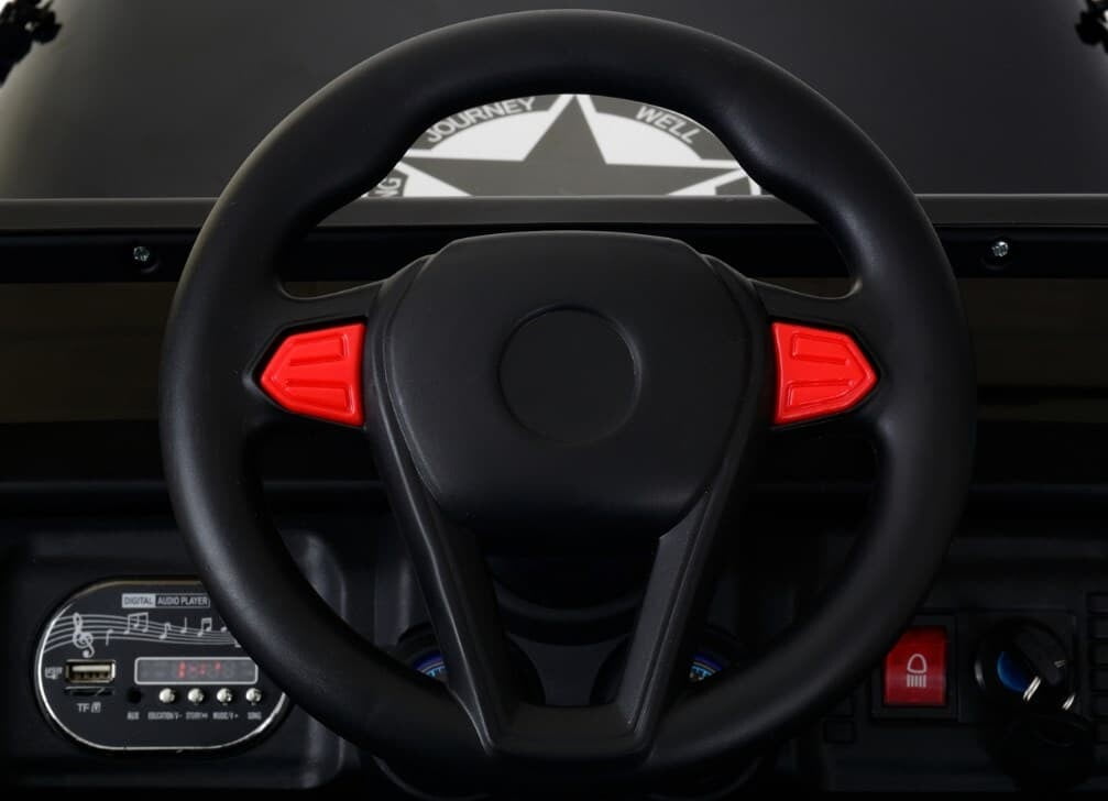 Otrok ga lahko vozi samostojno ali pa ga starš upravlja z daljinskim upravljalnikom. Vgrajen MP3 priključek. Možnost odpiranja vrat. Zahvaljujoč močnim elektromotorjem lahko avtomobilček vozi otroka do 35 kg. Vgrajena LED osvetlitev.