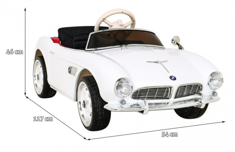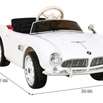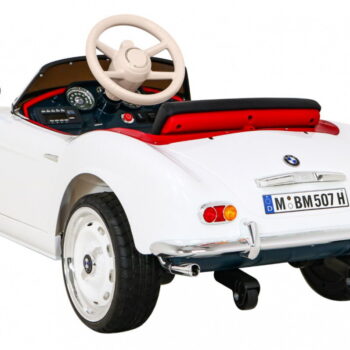 MODEL: BMW 507 Bela MOTOR: 2X35W BATERIJA: 12V 7,5ah ŠTEVILO SEDEŽEV: enosedežnik DIMENZIJE: dolžina 117 cm, širina 55 cm, višina 32,5 cm TEŽA: masa vozila – 19 kg, z embalažo – 19,5 kg, največja obremenitev – 35 kg OPREMA: