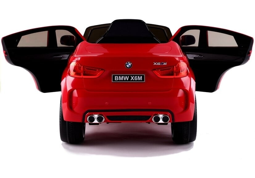 BMW X6M – najnovejši enosedežnik iz serije X enega najbolj priljubljenih SUV-jev. Velik otroški avtomobilček, ki ima daljinski upravljalnik za starše, odpiranje vrat na obeh straneh in 2 hitrosti za vožnjo naprej in nazaj. Poganjata ga dve zelo zmogljivi bateriji in dva motorja, največja hitrost do 7 km/h. Avtoček je opremljen s hupo, melodijami, za večjo užitek pa ga lahko priključite na MP3 predvajalnik, glasba se bo predvajala iz avtomobilskih zvočnikov. Funkcionalne LED luči. Vozilo je opremljeno z varnostnim pasom. Zasnova pravega modela BMW X6M – s kakovostjo in odličnimi detajli na vozilu si ga bo vaš otrok zapomnil kot najboljšo igračo iz otroštva.