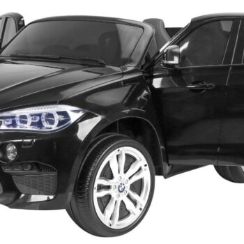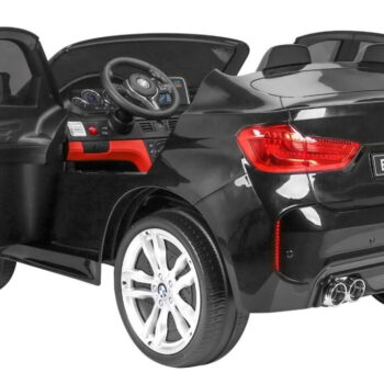 Avtomobil na baterije BMW X6m – dvosedežni Avtomobil lahko vozi otrok samostojno ali starš z daljinskim upravljalnikom. Vrata se lahko odpirajo. Zahvaljujoč zmogljivim 120 W elektromotorjem lahko avtomobil sprejme dva otroka do 45 kg. Gumijasta kolesa, usnjen sedež za maksimalno udobje malih voznikov. Vgrajen priključek za MP3, integrirane glasbene LED luči – spredaj/zadaj