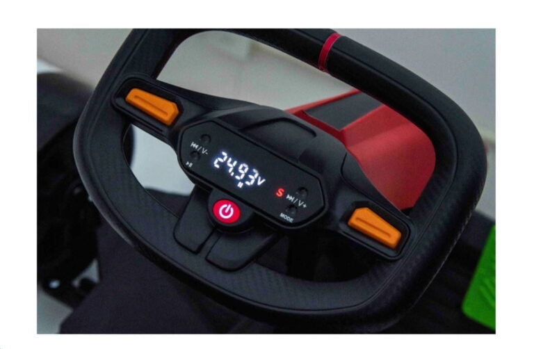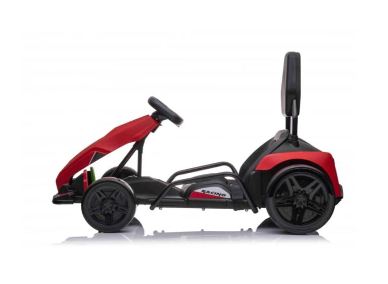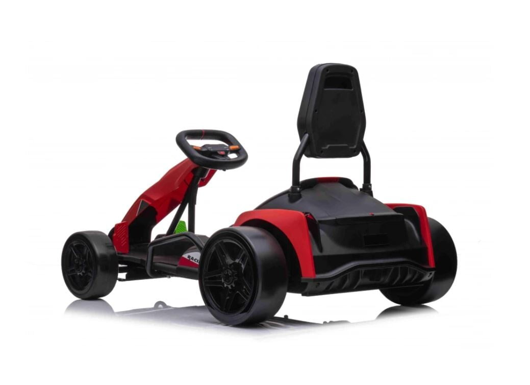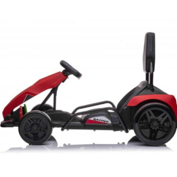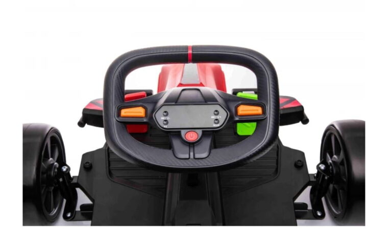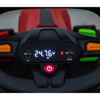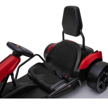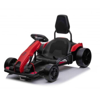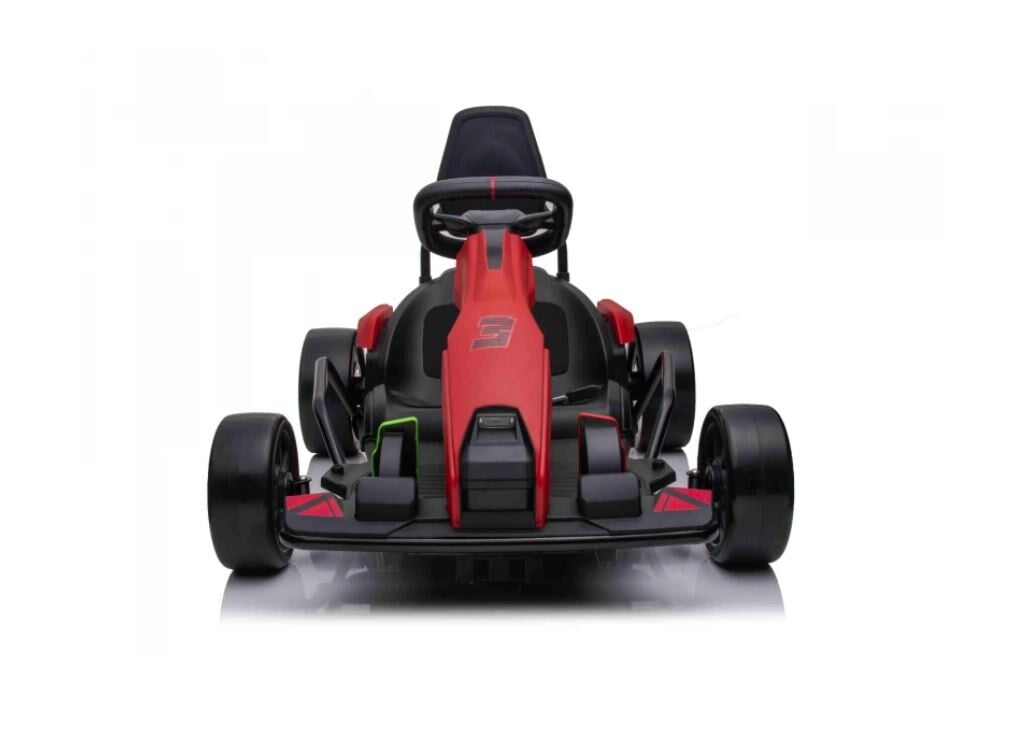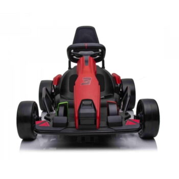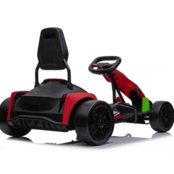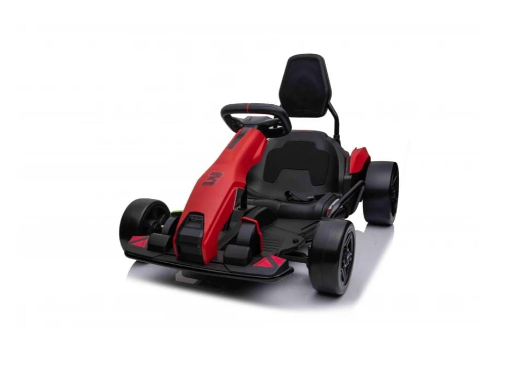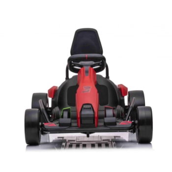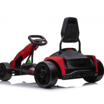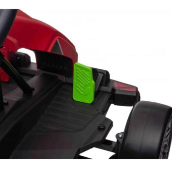 Število motorjev: 2 Moč motorja: 150W Število baterij: 1 Kapaciteta baterije: 24V/10AH Daljinski upravljalnik: ne Pogon: naprej, nazaj Število sedežev: 1 Material sedeža: prevlečen s peno Kolesa: guma Avdio plošča: Bluetooth FM radio: da Zvočni učinki: zagon motorja Luči: da Varnostni gumb STOP: ne Varnostni pasovi: da Mehki zagon: da Brez odpiranja vrat Indikator polnjenja: da Barva: rdeča Pobarvano: ne Dodatna oprema: funkcija driftanja Dodatki: obesek za ključe