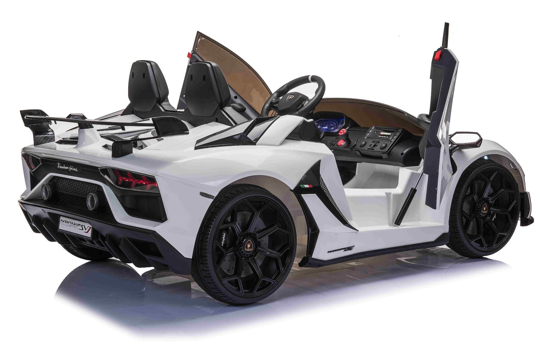 MODEL: Lamborghini SVJ roadster MOTOR: 2X 25000 vrt/min BATERIJA: 2 x 12V 7ah ŠTEVILO SEDEŽEV: dvosedežni MERE: dolžina 134 cm, širina 80 cm, višina 52 cm TEŽA: teža vozila – 28,7 kg, z embalažo – 34,2 kg, največja obremenitev – 80 kg OPREMA: