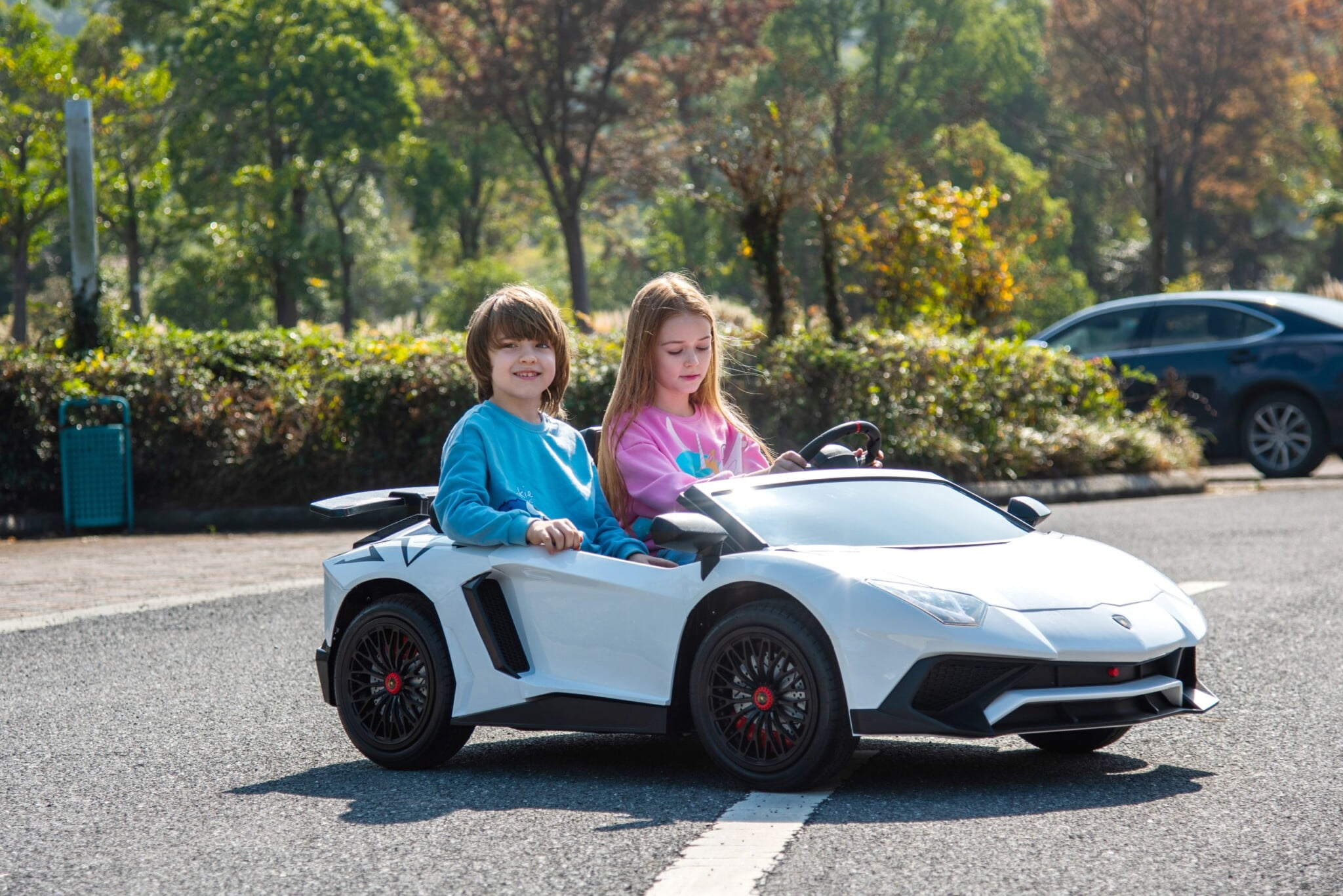 Zaradi impresivnih dimenzij, nosilnosti približno 120 kg in dveh ergonomskih sedežev lahko Lamborghini sprejme dve osebi . Za udobje med igro je vozilo opremljeno z mehkimi sedeži, oblazinjenimi v prezračevanem eko usnju v elegantni črni barvi. Vsak sedež ima ločen varnostni pas , kar zagotavlja popolno varnost.