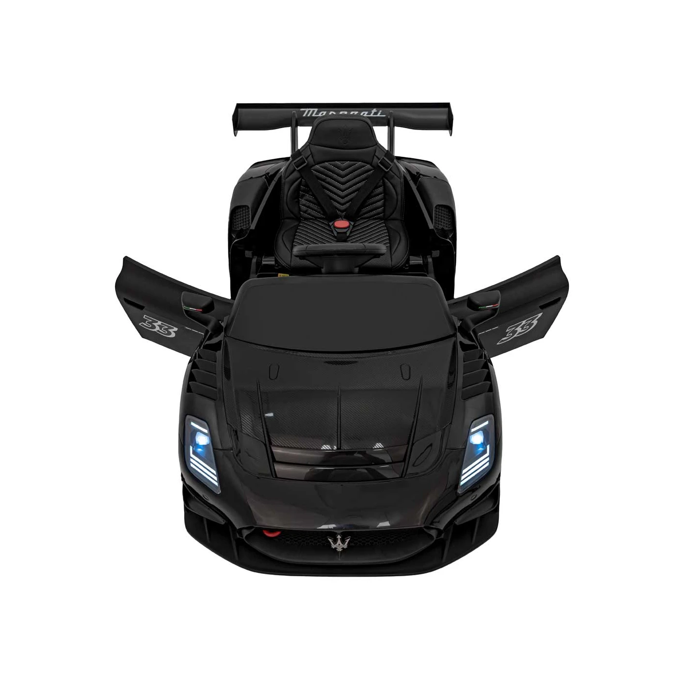 Interaktivne atrakcije so še ena prednost Maseratija MC20 GT2. LED luči z dodatnim načinom utripanja dajejo avtomobilu zelo realističen videz. Avdio plošča z vhodi USB , MP3 , AUX, povezavo Bluetooth in FM radiem vam omogoča poslušanje vaše najljubše glasbe in prednaloženih melodij , zaradi česar je vsaka vožnja še bolj prijetna. Poleg tega gumba za zvok in hupo, ki se nahajata na volanu, zagotavljata občutek pravega voznika.