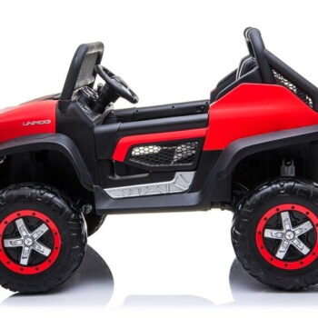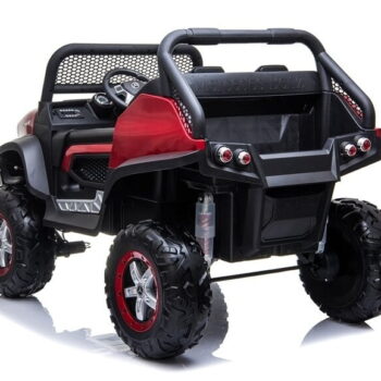 MOTOR: 4X45W BATERIJA: 1x12V 14Ah ŠTEVILO SEDEŽEV: dvosedežni MERE: dolžina 128 cm, širina 85 cm, višina 83 cm TEŽA: teža vozila – 32 kg, z embalažo – 33 kg, največja obremenitev – 35 kg OPREMA: daljinski upravljalnik 2,4 GHz, 3 hitrosti, gumb za varnostno ustavljanje, gumijasta kolesa, LED sprednje in zadnje luči, odpiranje vrat, sedež iz eko usnja, avdio plošča, indikator polnjenja, FM radio, USB, MP3