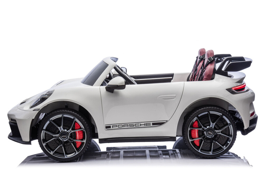 Najnovejši model otroškega avtomobila in hkrati največji nemške znamke Porsche Bogato opremljen Zmogljivi 200 W x4 motorji z 24 V baterijo ✅ Udoben usnjen sedež, LED luči, gumijasta kolesa, odpirajoča se vrata Multimedijska plošča z vgrajeno melodijo in priključkom USB ter MP3
