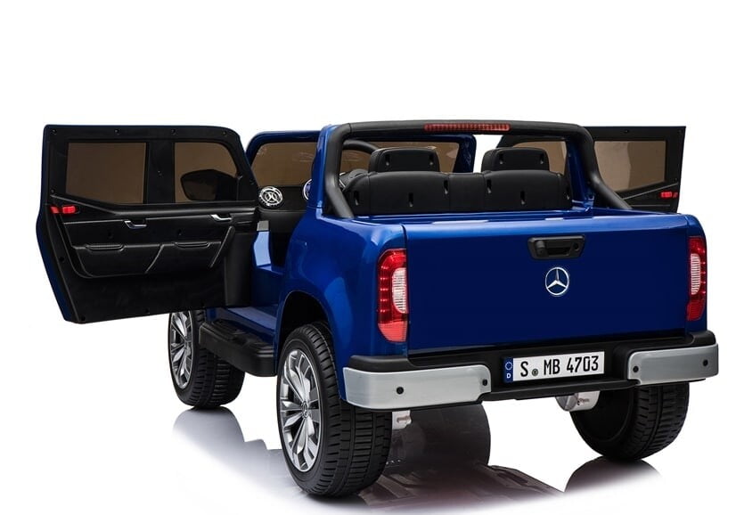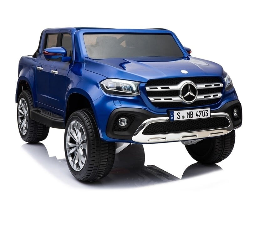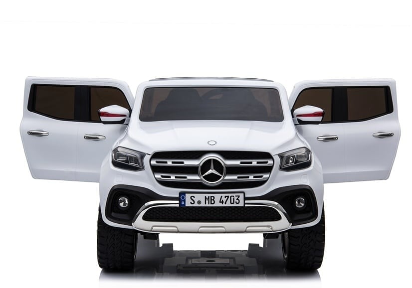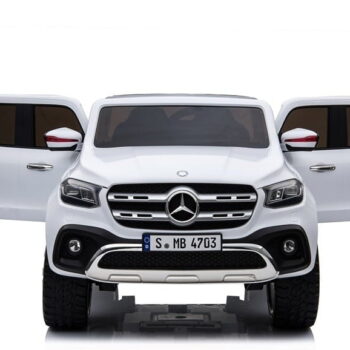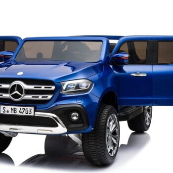 Ogromen otroški avtomobilček na baterije – dvosedežni – Mercedes X razred. 🙂 Otrok ga lahko vozi samostojno ali pa ga starš upravlja preko daljinskega upravljalnika. Vgrajen MP3 priključek, z možnostjo nastavitve zvoka. Možnost odpiranja vrat. Zahvaljujoč močnim elektromotorjem lahko avtomobilček pelje otroka do 50 kg. Vgrajena LED osvetlitev.
