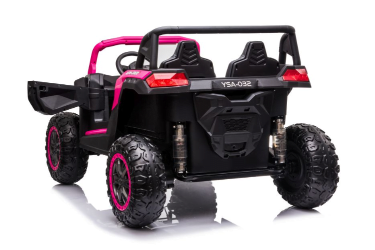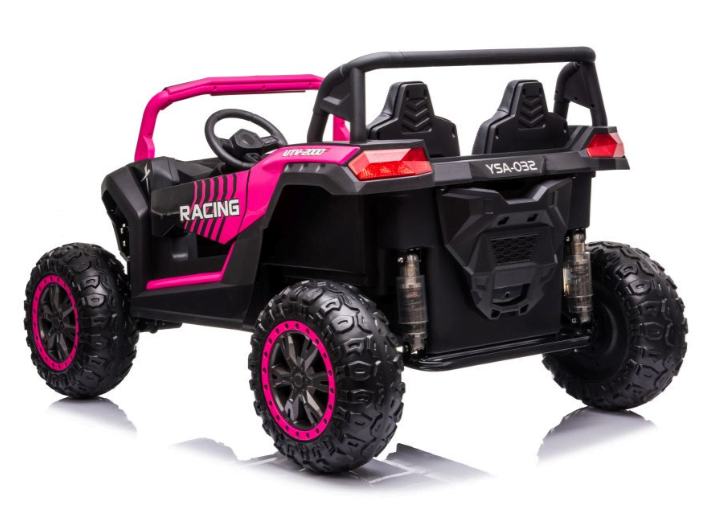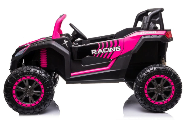 MOTOR: 4X200W BATERIJA: 24V 7Ah ŠTEVILO SEDEŽEV: dvosedežni MERE: dolžina 135 cm, širina 95 cm, višina 80 cm TEŽA: teža vozila – 40 kg, z embalažo – 44 kg, največja obremenitev – 70 kg OPREMA: 3 hitrosti, gumb za varnostno ustavljanje 2 hitrosti gumijasta kolesa LED sprednje in zadnje luči odpiranje vrat sedež iz eko usnja avdio plošča indikator polnjenja FM radio, USB, vhod za SD, MP3, BT septembrska akcija