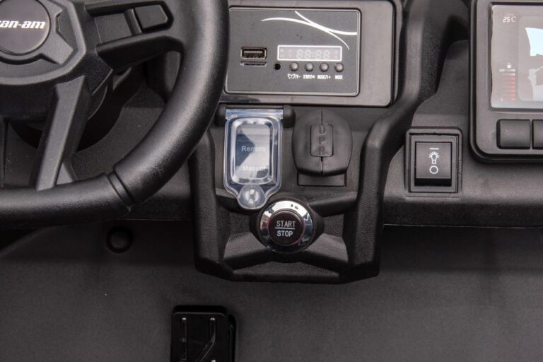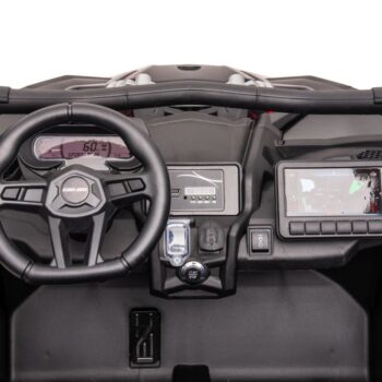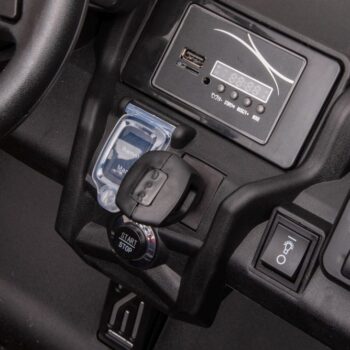 Tehnični podatki Motor 4x200W Baterija 2x24V7Ah Menjalnik Avtomatski, 3 hitrosti Dimenzije vozila 145 cm x 84 cm x 79 cm Pospešek 8-13 km/h Teža vozila 36 kg Največja obremenitev 50 kg Čas polnjenja 8 ur Čas delovanja do 1 ure Zaviranje Samodejno ob sprostitvi pedala za plin Zaustavitev v sili z daljinskim upravljalnikom (P) Oprema Varnostni pasovi ✓ Odpiranje vrat ✓ Ključi x Fotelji Mehko eko usnje Kolesa Mehko EVA Daljinski upravljalnik 2.4G Luči Sprednje in zadnje LED Avdio USB Bluetooth FM radio MP3 vhod