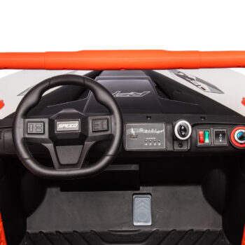 NA VOLJO ZDAJBogato opremljenZmogljivi 75 W x4 motorji z 24 V baterijo ✅ Udoben usnjen sedež, LED luči, gumijasta kolesa, odpirajoča se vrataMultimedijska plošča z vgrajeno melodijo in priključkom USB ter MP3