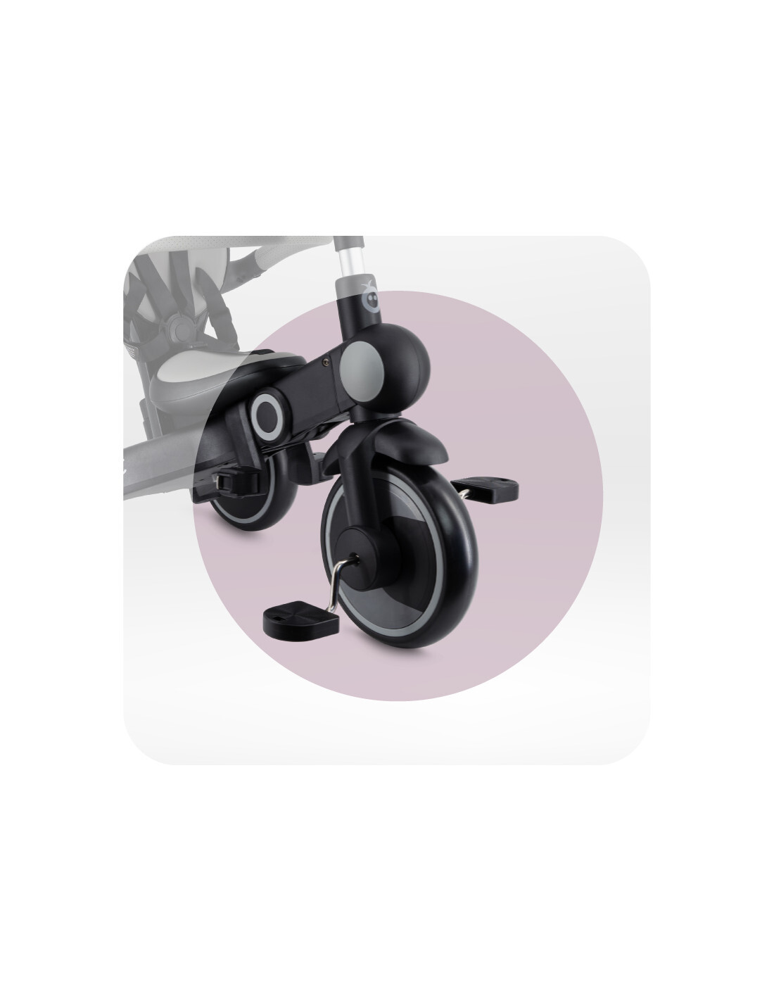 - Večnamenska zasnova: MoMi SOLIVIA ponuja štiri različne načine uporabe v enem izdelku: klasični tricikel s pedali, tricikel, ki otroku omogoča samostojno vožnjo, poganjalec in poganjalček. Vse te preobrazbe lahko dosežete brez uporabe orodja, zaradi česar je izjemno priročen za starše.