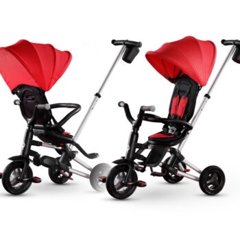 Zložljivi tricikel NOVA+ je zasnovan za udobje in varnost dojenčkov. NOVA+ je stabilen in varen, ima moderno aluminijasto konstrukcijo, udoben, oblikovan sedež ‘360’, ki omogoča gibanje naprej ali nazaj. Za sestavljanje ne potrebujete nobenega orodja – sistem hitrega zlaganja omogoča, da kolo zložite v nekaj preprostih gibih. Kolo je opremljeno z ograjo, ki preprečuje padec otroka, pettočkovnimi varnostnimi pasovi in oporami za noge. Po odstranitvi krmila, ograje, kabine in prevleke sedeža bo NOVA+ služil kot klasičen tricikel za samostojnega malega kolesarja. Gumijasta kolesa brez zračnice zagotavljajo udobje vožnje. Funkcija prostega teka omogoča starševski nadzor za mirno sledenje označeni poti. Kombinacija aluminijaste konstrukcije in elementov iz visokokakovostnih materialov zagotavlja vzdržljivost. Zahvaljujoč funkciji zlaganja je tricikel enostavno prevažati. DIMENZIJE IZDELKA: