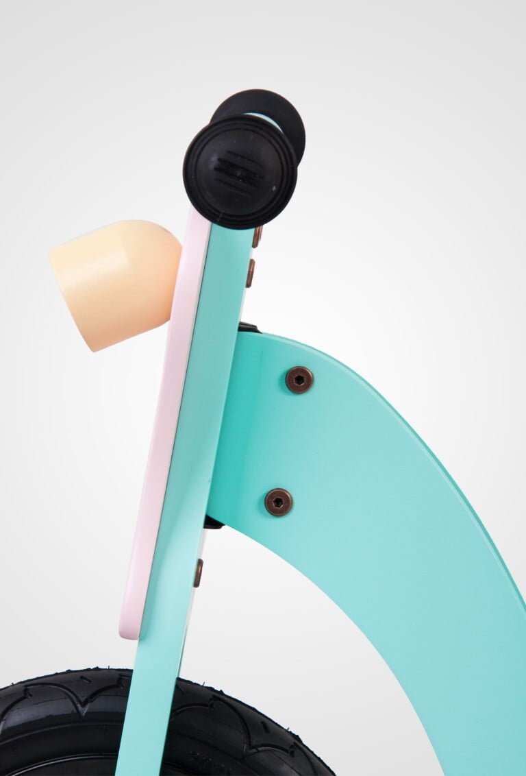 Višina sedeža: 36–40 cm Ključne značilnosti izdelka: • pomaga razvijati občutek za ravnotežje in otroka pripravi na prehod na pravo kolo • za otroke, starejše od 2 let • brezčasen, klasičen videz in moderne barve • udoben sedež z nastavitvijo višine • lesen okvir, prekrit z ekološkimi, nestrupenimi barvami • gumijasta kolesa, odporna proti prebadanju – odporna proti prebadanju, ni treba tlačiti • 12-palčni kroglični ležaji zagotavljajo gladko vožnjo • gumijasti ročaji krmila zagotavljajo otroku trden oprijem • zavore proti zasuku s polnilom preprečujejo, da bi si otrok prikleštil prste • združljiv s standardom EN71 Varnost Ustreza standardu EN71.