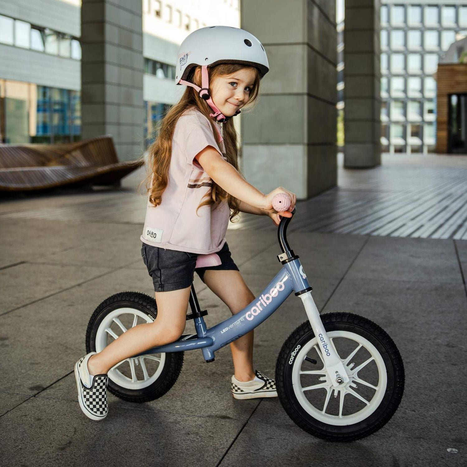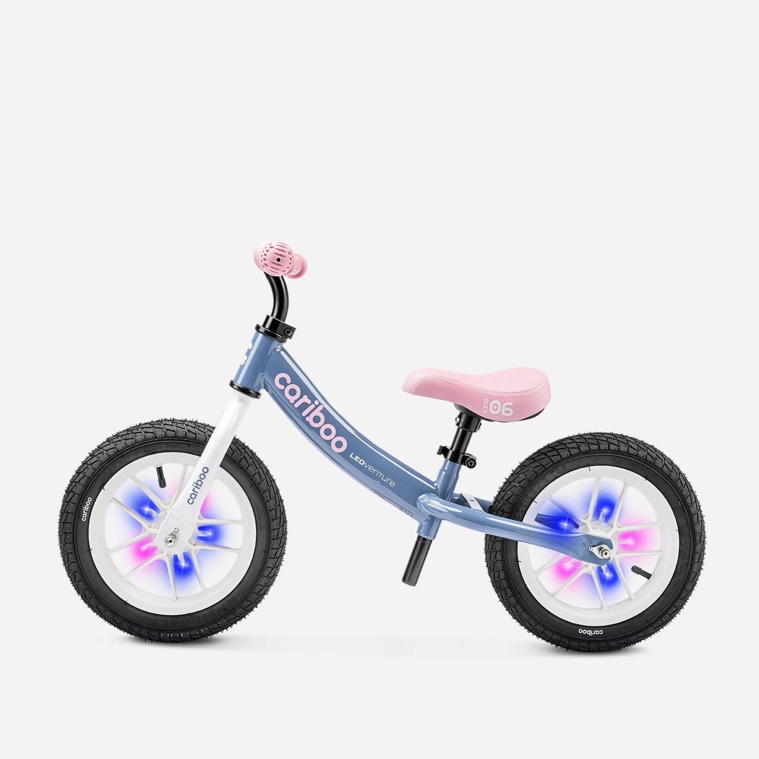Poganjalec Cariboo LEDventure je opremljen s profiliranim okvirjem, ki je ukrivljen navzdol. Ta zasnova otroku olajša sedenje. Gumijasti konci krmila zagotavljajo trden oprijem in večjo varnost med vožnjo. Sedež iz eko usnja otroku omogoča udoben položaj.