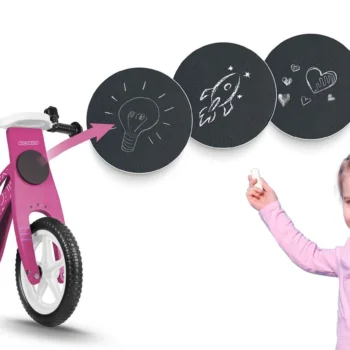 Kredna tabla na krmilu omogoča vašemu otroku, da svoje kolo prilagodi in okrasi, kakor koli želi! Izbrisljiva tabla zagotavlja neskončno zabavo!