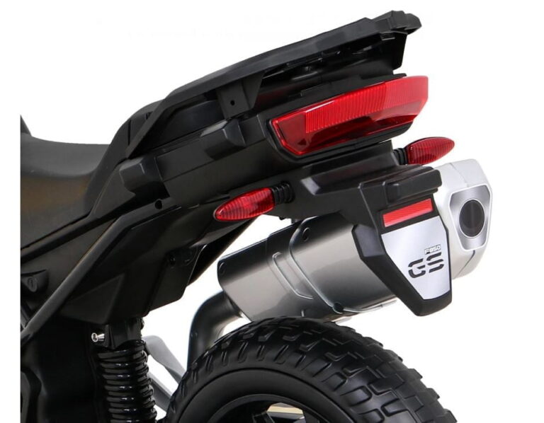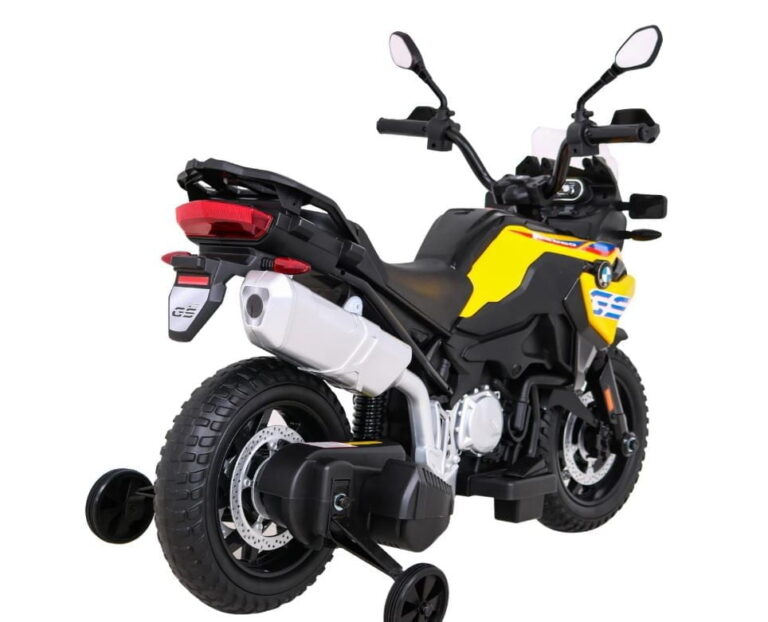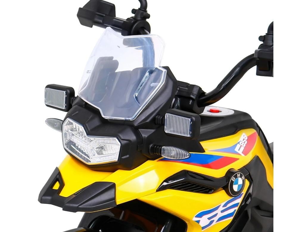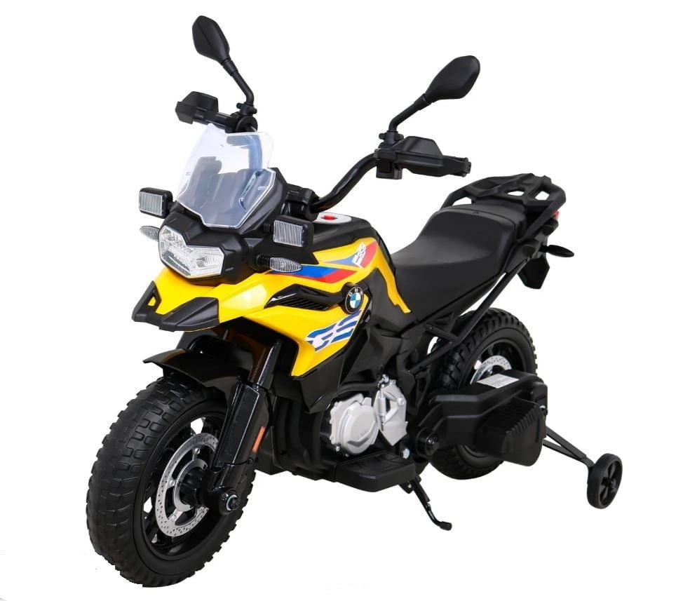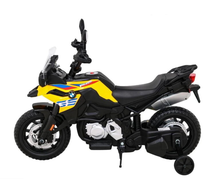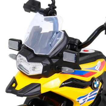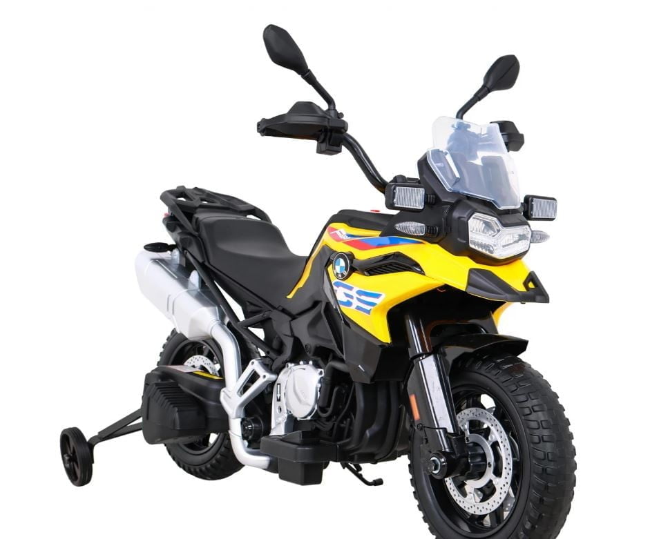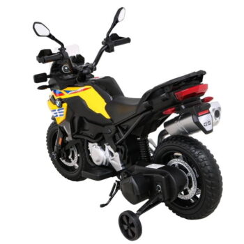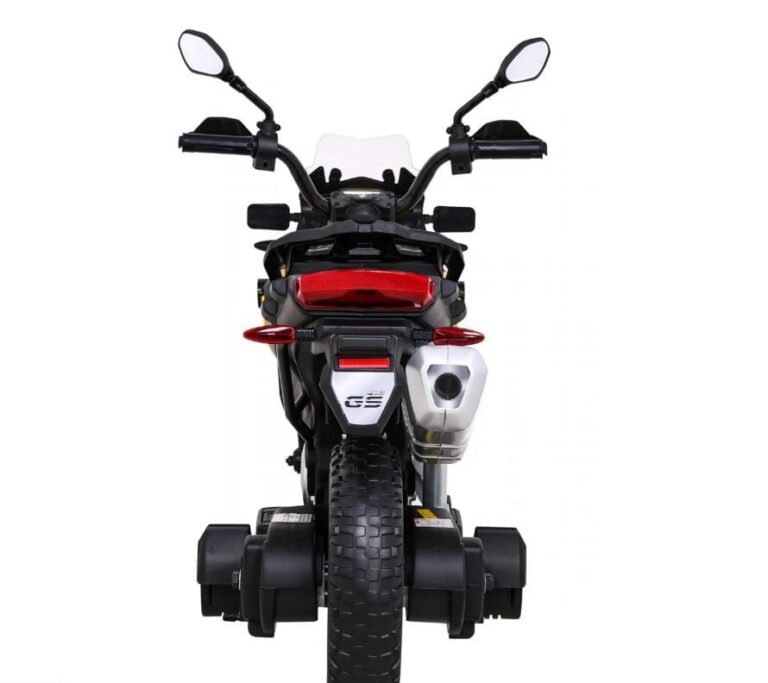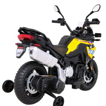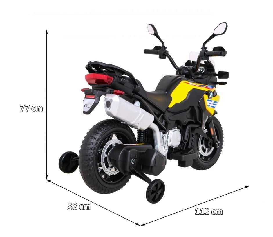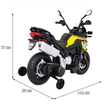Model: BMW F850 GS Motor: 2x35W Baterija: 12V / 7Ah Kolesa: kolesa iz EVA pene – premer 30 cm LED luči Zvočna plošča Sedež: prtljažnik 31 x 20 cm Velikost vozila: dolžina 112 cm, širina 38 cm, višina 77 cm, največja obremenitev: 35 kg Pomožna kolesa v kompletu Priporočena starost: 4+