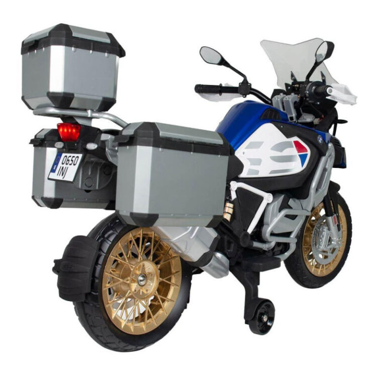 Baterijski motor BMW 1250 GS Adventure 12V, ki ga je uradno licenciral BMW-INJUSE, je priporočljiv za otroke, stare 3 leta in več. Med njegovimi glavnimi značilnostmi so gumirana kolesa za boljši oprijem cestišča.