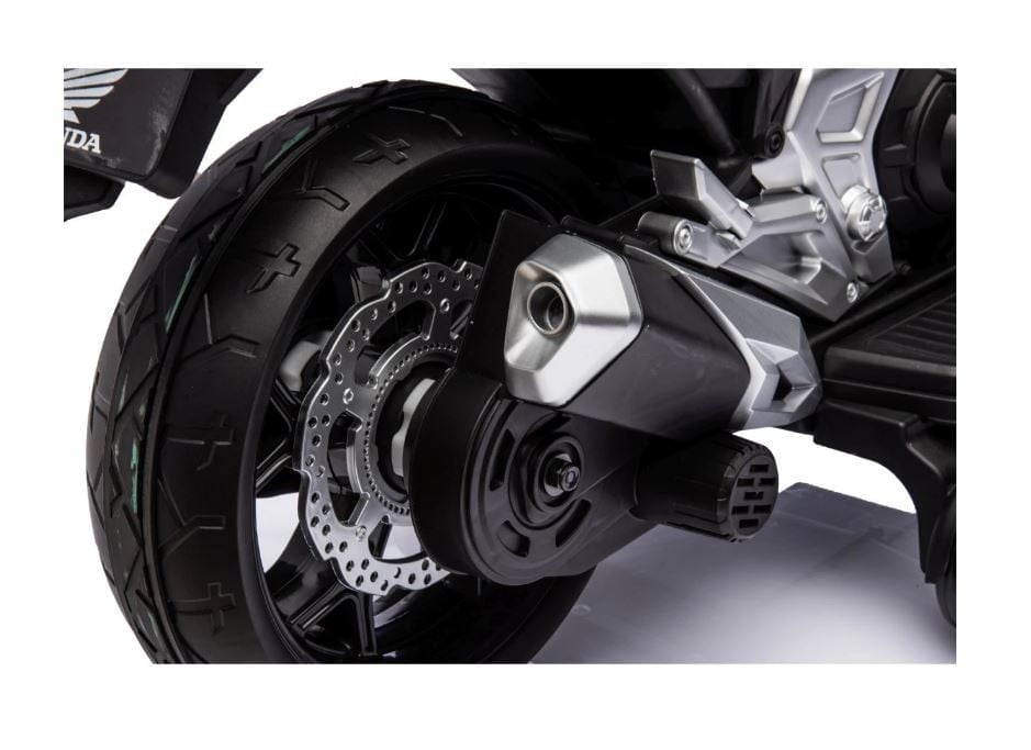 Dvojni motorji z močjo 35 W poganjajo motocikel Honda NC750X, kar omogoča dinamično vožnjo naprej in nazaj. Zahvaljujoč bateriji 12 V/4,5 Ah lahko malčki uživajo v dolgih urah vznemirljive zabave brez potrebe po pogostem polnjenju.