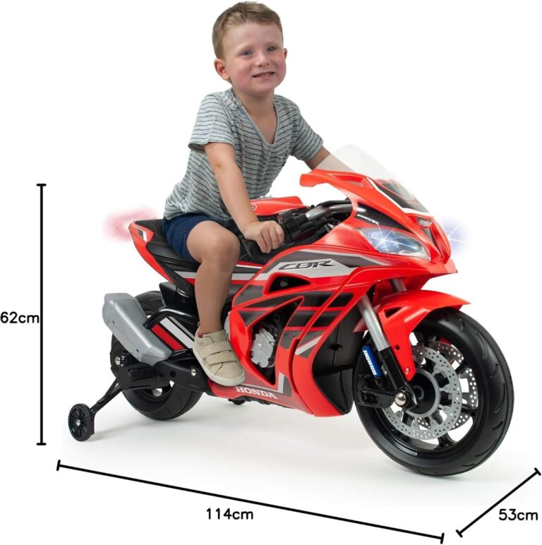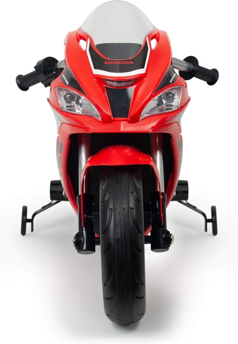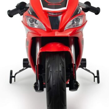 Prinesite domov košček Hondine dirkaške DNK! Uradno licencirani CBR “ride-on” združuje pristen videz, udoben ergonomski sedež in gumirane obročnike za boljši oprijem. Z snemljivimi pomožnimi kolesi se lahko otroci varno podajo na pot in kasneje vozijo “kot odrasli”. Izdelano v Španiji (Injusa) – kakovost in zabava v istem paketu.
