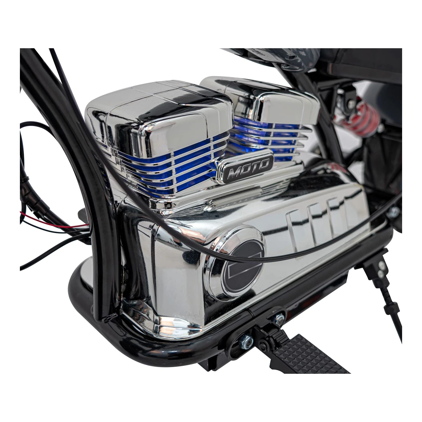 Srce otroškega motornega kolesa Chopper Warrior je zmogljiv 350 W motor , ki zagotavlja gladko in dinamično vožnjo. 2 bateriji s kapaciteto 18 V/9 Ah , zaporedno povezani 36 V, zagotavljata dolg delovni čas z enim polnjenjem. To mladim voznikom omogoča, da uživajo v vožnji več ur brez potrebe po pogostem polnjenju. Ta tehnološka rešitev omogoča, da elektromotor izpolni pričakovanja tudi najzahtevnejših uporabnikov.