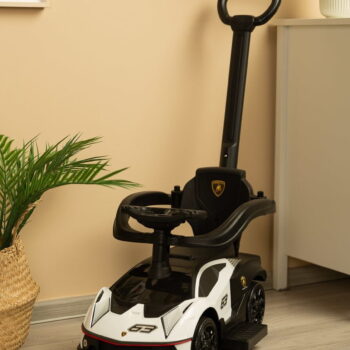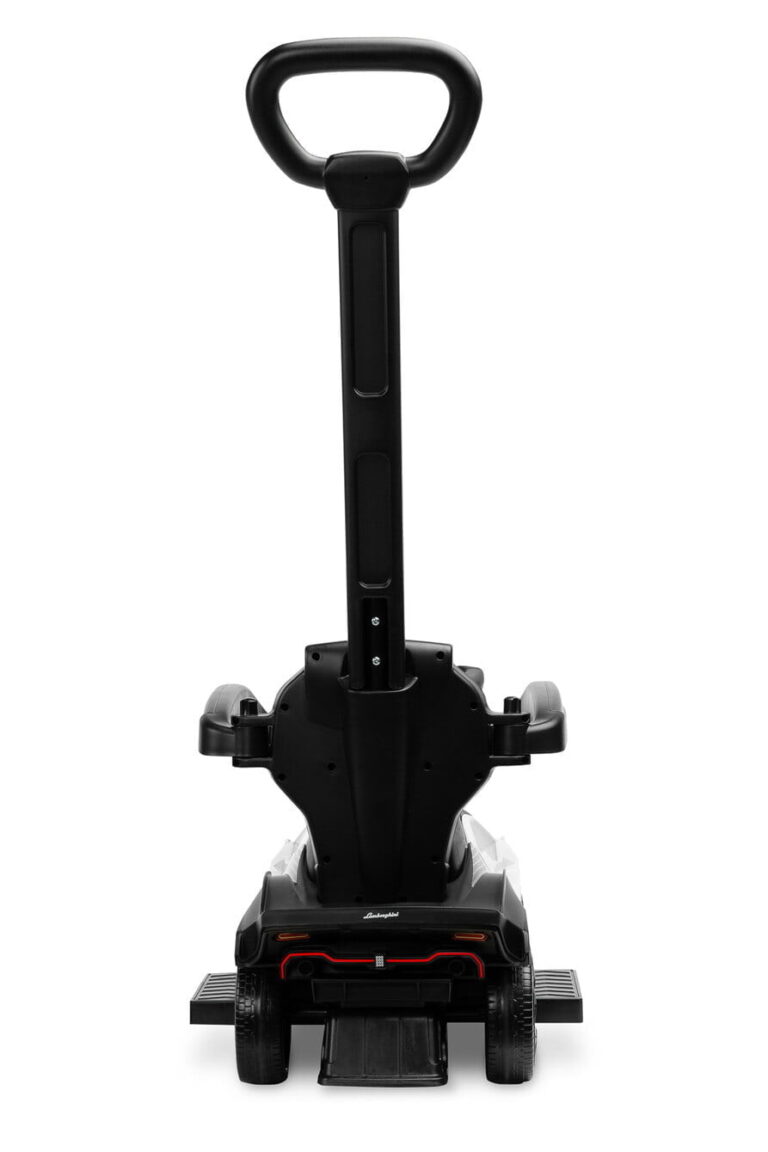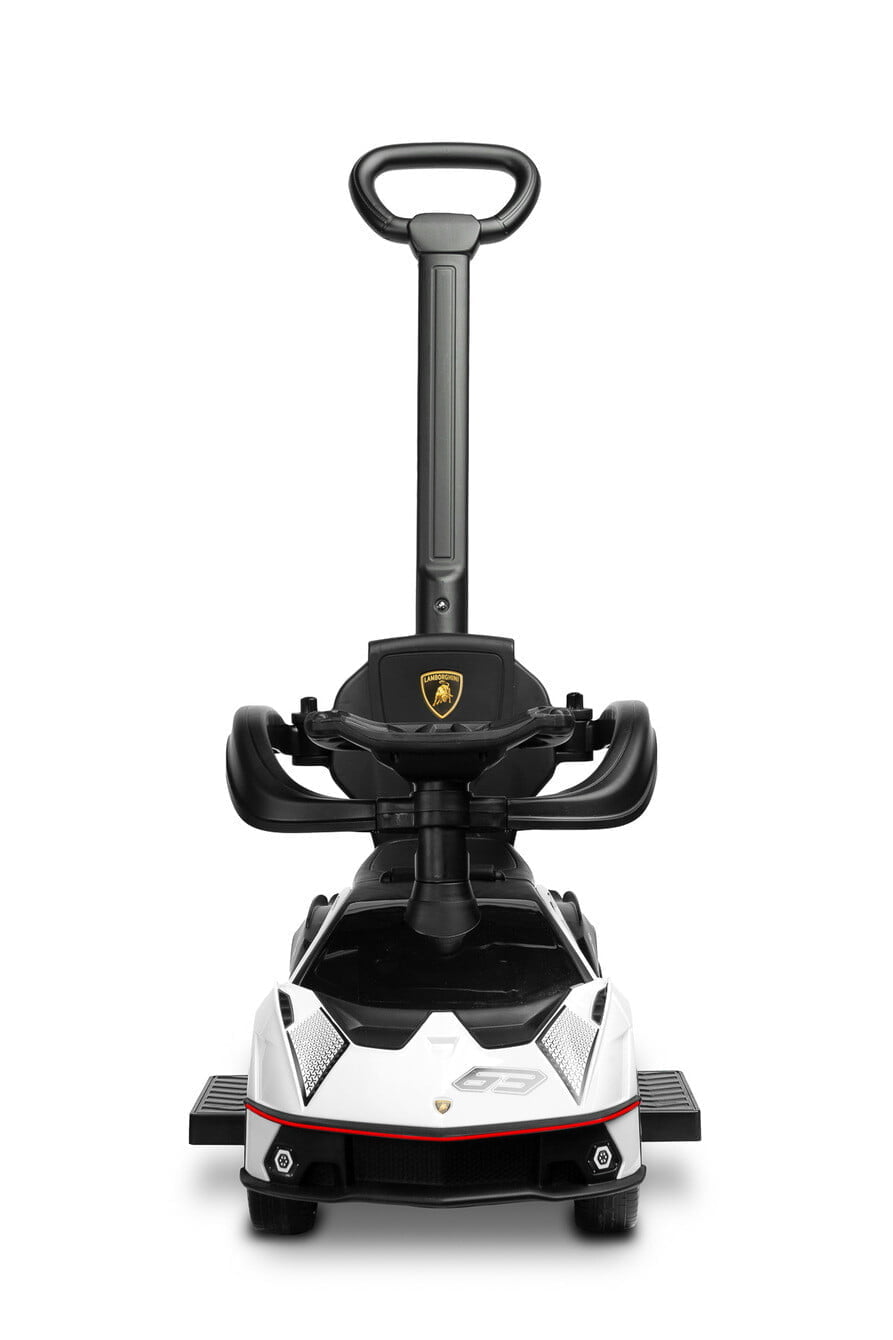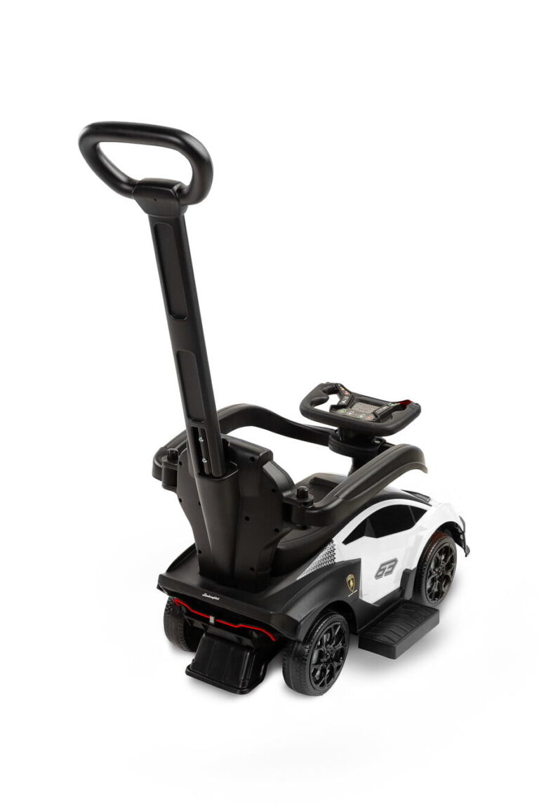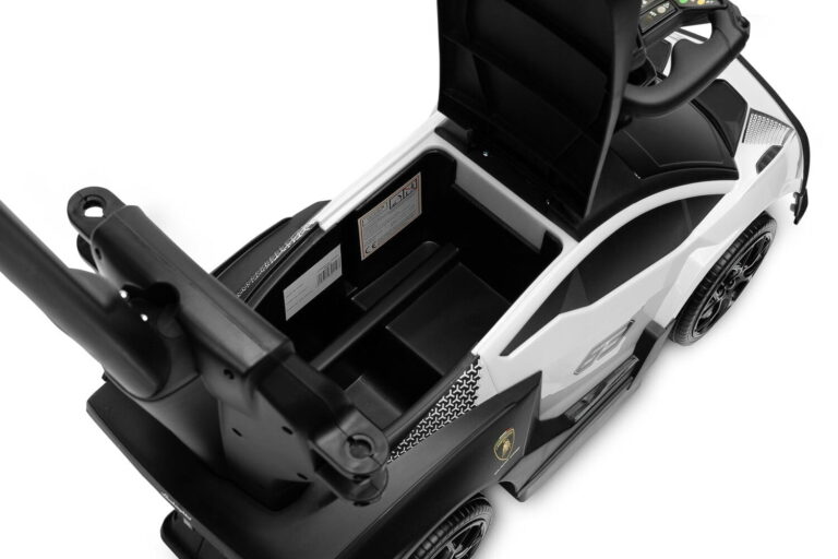 Vozilo je licencirano s strani Lamborghinija in Lamborghini Bull and Shield – italijanskih znamk luksuznih avtomobilov, pa tudi superšportnih avtomobilov. Voziček je izdelan z veliko pozornostjo do najmanjših podrobnosti in kakovosti uporabljenih materialov. Avtomobil je zvesta kopija modela Essenza SC V12. Izdelek ima vrtljiva kolesa , ki jih starš lahko enostavno upravlja z volanom. To se prevede v udobje med sprehodom. Trakovi in ročaj so zelo enostavni za sestavljanje in razstavljanje . Jeklene osi koles zagotavljajo stabilnost in vzdržljivost vožnje. Po drugi strani pa pnevmatike iz PVC-ja – termoplastičnega materiala, ki ga odlikuje velika prožnost in vzdržljivost, omogočajo uporabo na vseh površinah brez poškodb ali prask. Oblikovan sedež in sistem ograje zagotavljata visoko raven udobja in varnosti za najmlajše uporabnike – prikolico lahko uporablja otrok od 12. meseca starosti . Dodatna zaščita – nameščena pod voznikom (zadaj) ščiti starejše otroke pred prevrnitvijo med hitrejšo vožnjo.