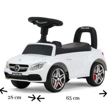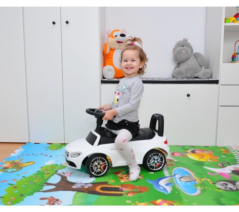 NA VOLJO ZDAJ Imeti vozniško dovoljenje za vožnjo Mercedes Benz ni le estetski vidik, temveč tudi zagotovilo za visokokakovostno izdelavo in zvestobo detajlom, značilnim za znamko. Zaradi tega je lahko privlačnejši tako za otroke kot za starše. starost: 12 m+ ⚖️ največja obremenitev: 23 kg zvočni učinki ✔️ dimenzije: 82 x 23 x 45 cm