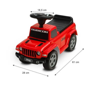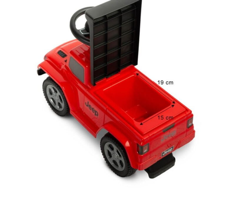 Otroški voziček Jeep Rubicon Gladiator z licenco združuje terensko zasnovo in visoko kakovost izdelave. Pomagal vam bo pri učenju samostojnega gibanja in nudil veliko zabave med igro. Potisnik ima krmilnik z dvema gumboma, ki oddajata zvok. Pod sedežem je prostor za igrače.