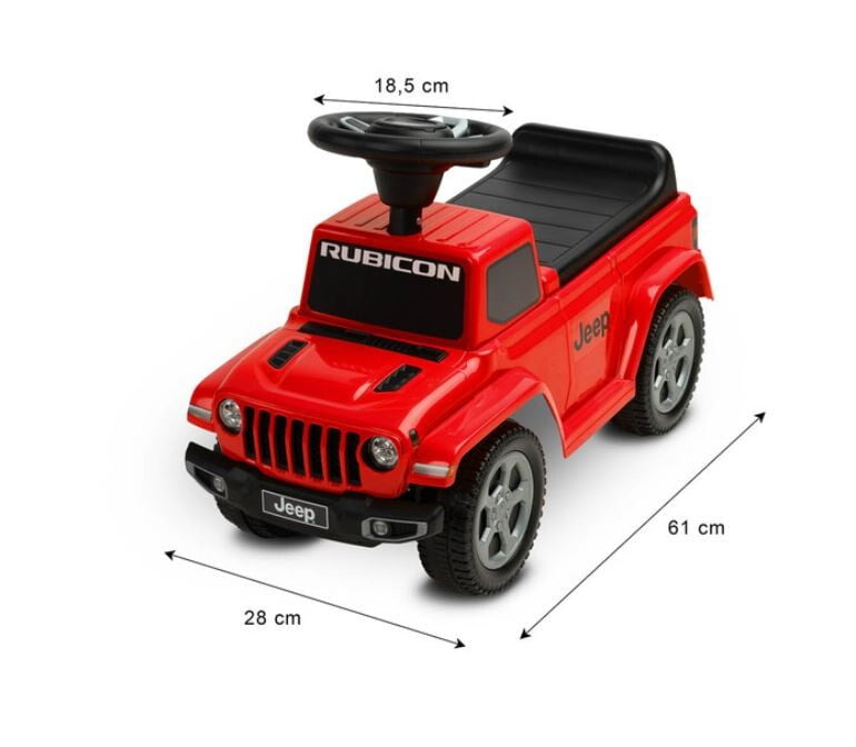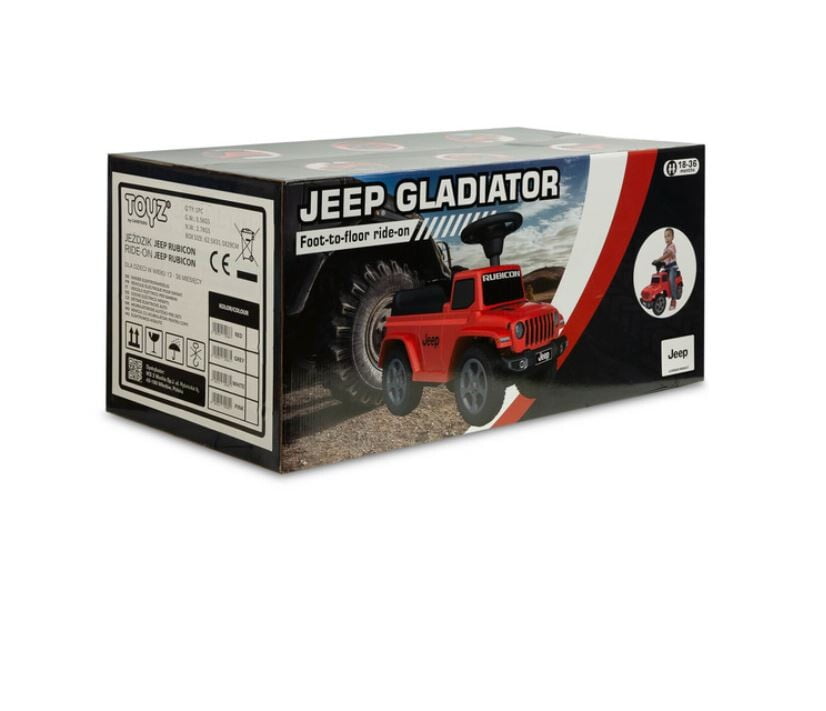 Otroški voziček Jeep Rubicon Gladiator z licenco združuje terensko zasnovo in visoko kakovost izdelave. Pomagal vam bo pri učenju samostojnega gibanja in nudil veliko zabave med igro. Potisnik ima krmilnik z dvema gumboma, ki oddajata zvok. Pod sedežem je prostor za igrače.