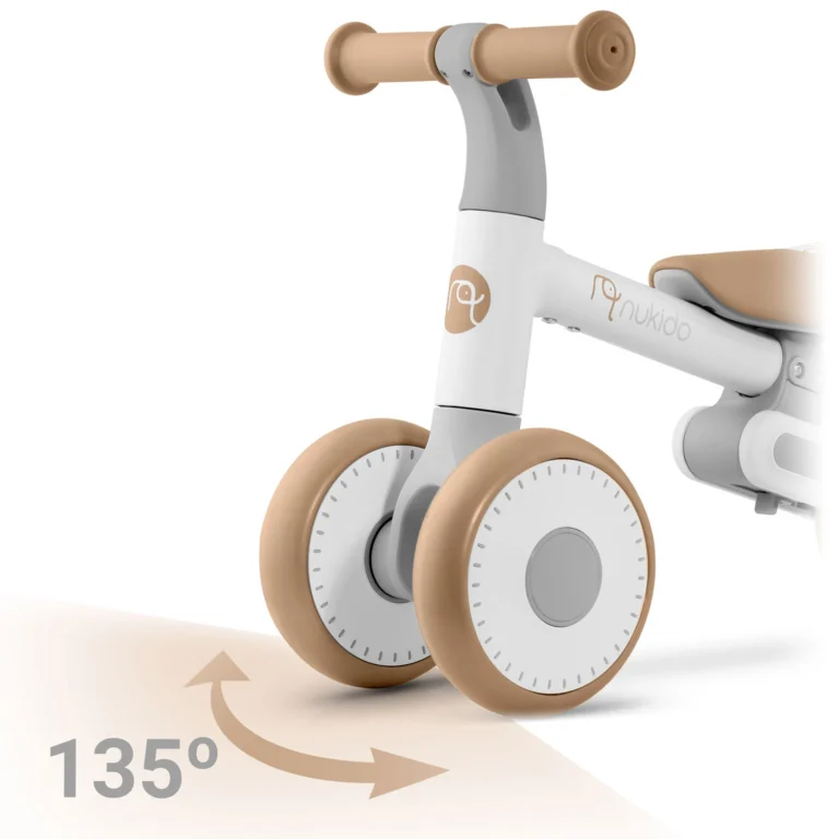 Otroško poganjalo Nukido bež[/caption] Poganjalo Nukido vpliva na razvoj motorične koordinacije pri otrocih. Prvo kolo za ravnotežje vašega otroka! ✔ Tri kolesa iz pene EVA – boljša stabilnost in gladkost. ✔ Nastavitev višine sedeža – raste z otrokom. ✔ Lahka in varna zasnova – idealna za najmlajše. Glavne značilnosti: trpežen, lahek okvir, stabilen, mehak penasti sedež, nastavljiva višina, minimalistična oblika, 15 cm kolesa iz pene EVA, gumirani ročaji z zaporami.