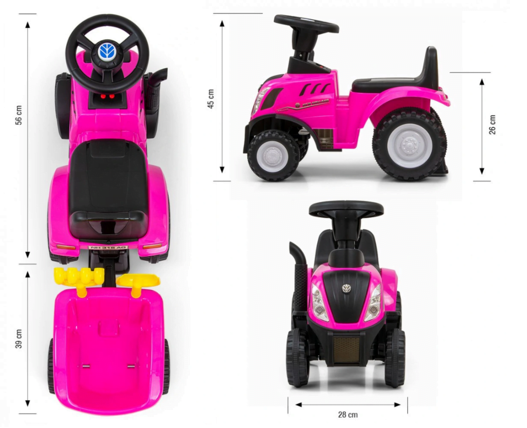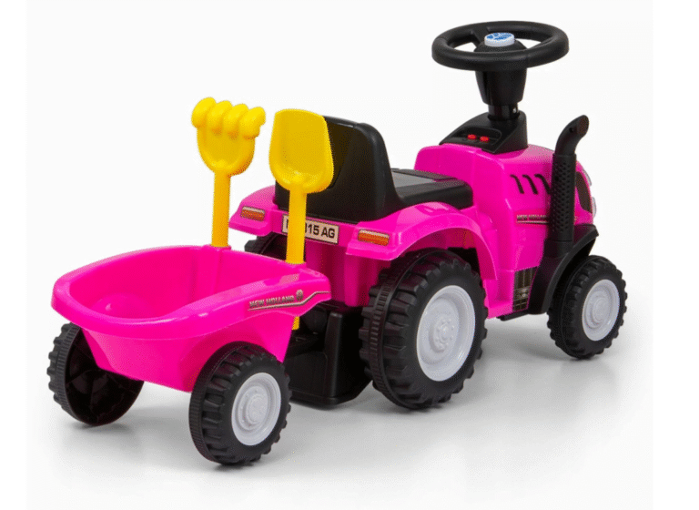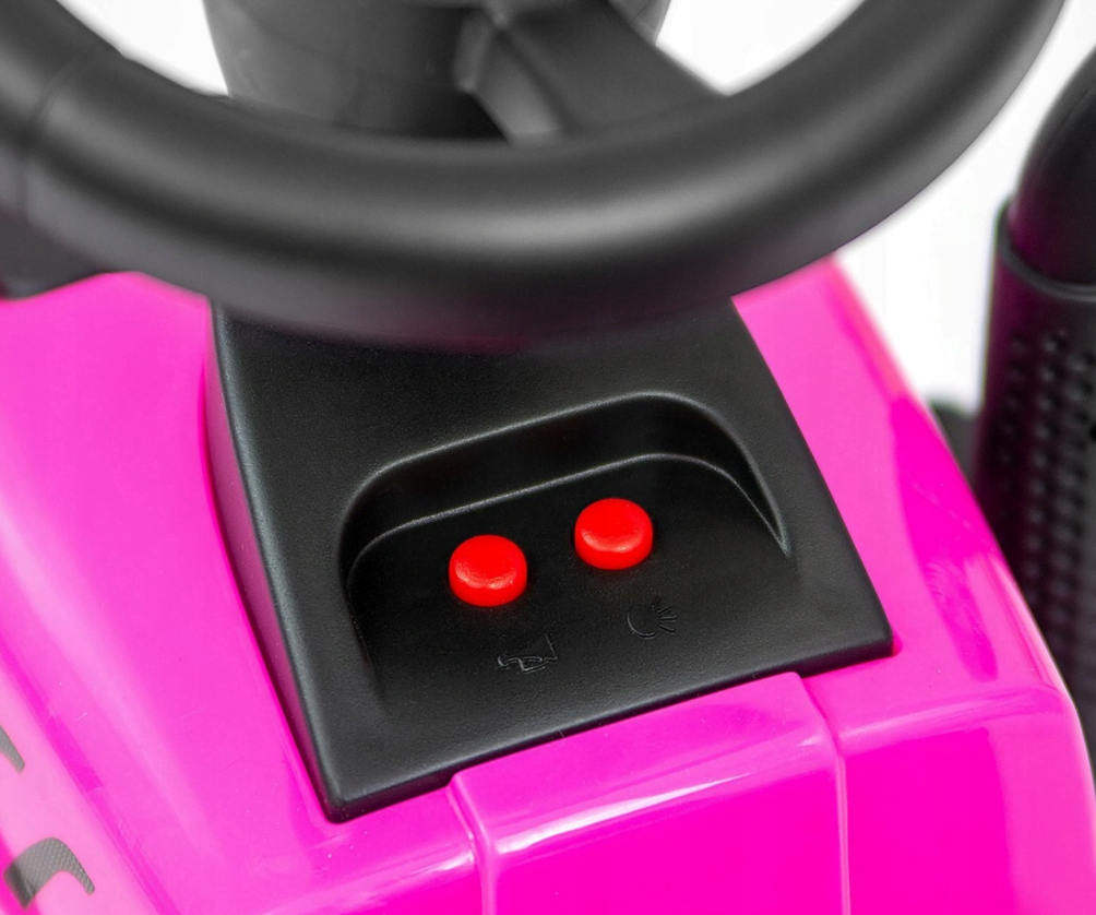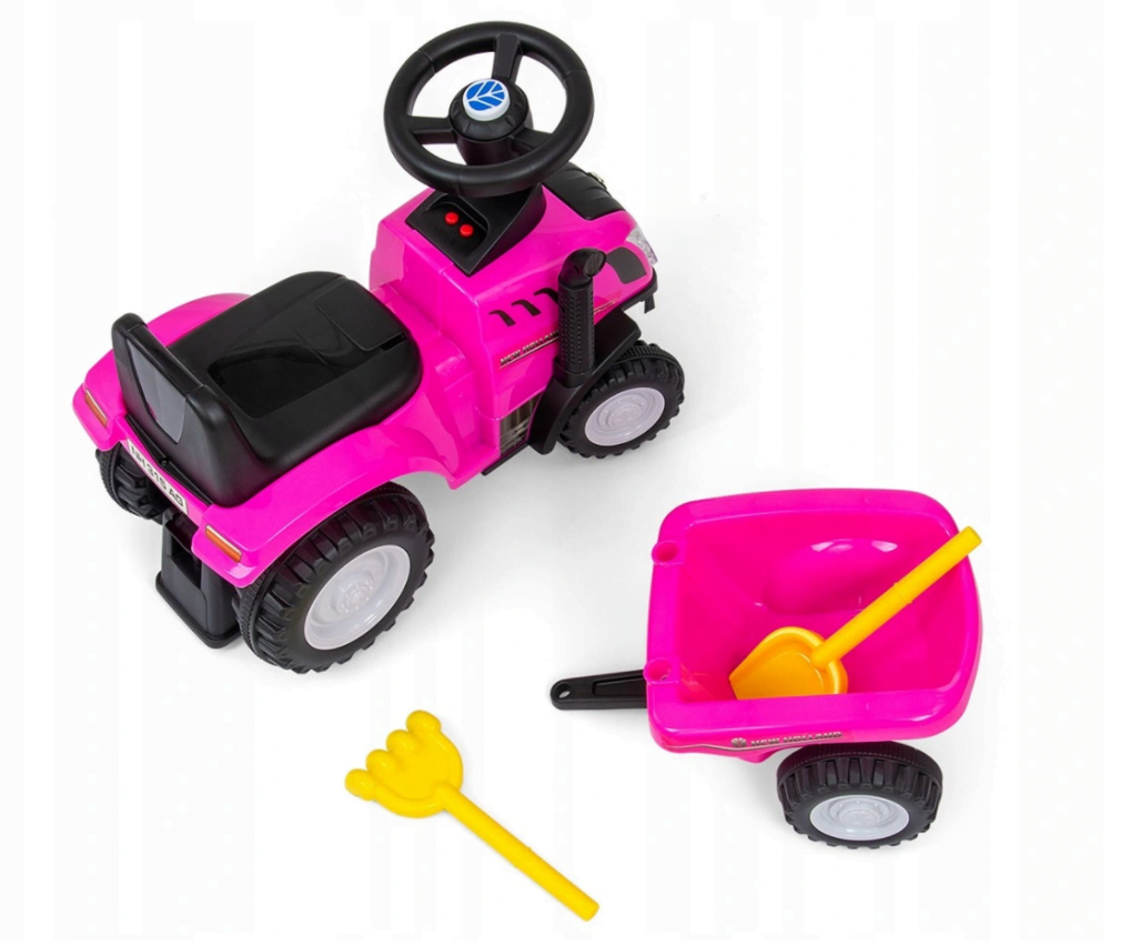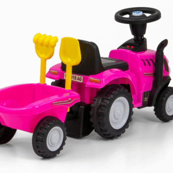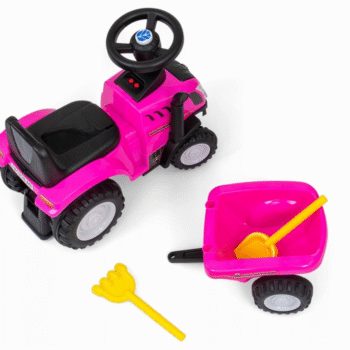 Značilnosti izdelka: ✔️ lopata in grablje vključene ✔️ starost: 12 mesecev + ✔️ dimenzije: 86x29x42 cm ✔️ višina sedeža: 26 cm ✔️ maks. nosilnost: 25 kg ✔️ napajanje: 2 x AA (nista vključeni) ✔️ vrtljiva sprednja kolesa ✔️ sirena in zvok motorja pod nosilcem volana ✔️ snemljiva prikolica
