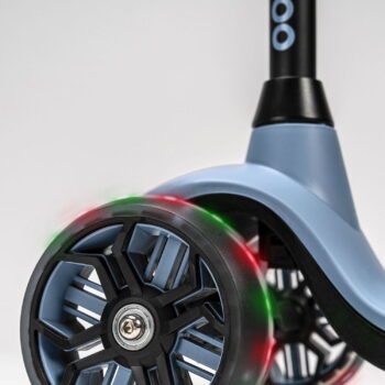 Kolesa skiroja se prižgejo takoj, ko se vozilo zažene – vse zahvaljujoč vgrajenim rdečim in zelenim LED diodam. Ta dodatek dodatno spodbuja otroke k aktivnemu preživljanju časa. Dodatna prednost je edinstven videz koles in njihov velik razmik, kar zagotavlja stabilnost.