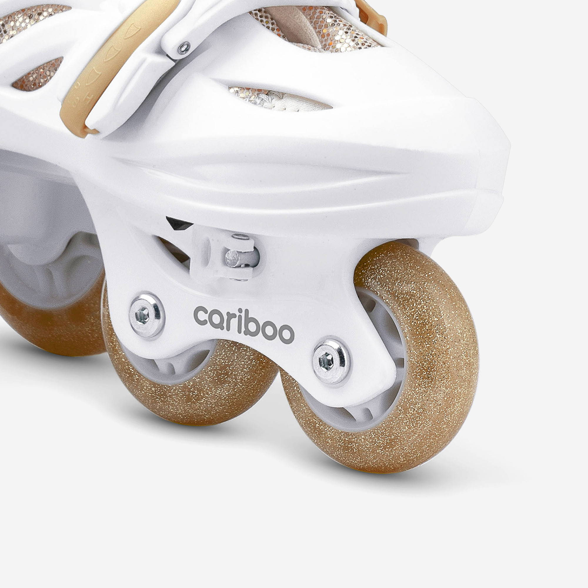 Drsalke Cariboo Ballerina so idealne za prve korake na kolesih . Posebna konstrukcija (2 kolesi zadaj kot klasične drsalke + 2 kolesi spredaj kot rolerji) zagotavlja večjo stabilnost in pomaga otroku hitreje vzpostaviti ravnotežje .