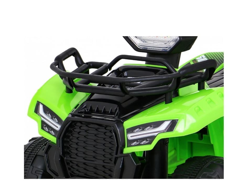 Baterijski štirikolesnik STORM Starost: Idealen za otroke od 1 do 4 let Varnost: certifikat, ki potrjuje skladnost z zahtevami evropskega standarda EN71, CE Specifikacije: MENJALNIK NAPREJ IN NAZAJ AVTOMATSKA ZAVORA, VKLJUČNO S SAMODEJNO SPROŠČITVIJO PLINA BATERIJA 6V7Ah MOTOR 25 W MAKSIMALNA HITROST: 3 KM/h ČAS DELA: približno 1 ura ČAS POLNJENJA 8–10 ur SPREDNJI AMORTIZERJI DIMENZIJE: DOLŽINA – 71 cm ŠIRINA – 44 cm SKUPNA VIŠINA – 43 cm POLNILEC 6V 500 m