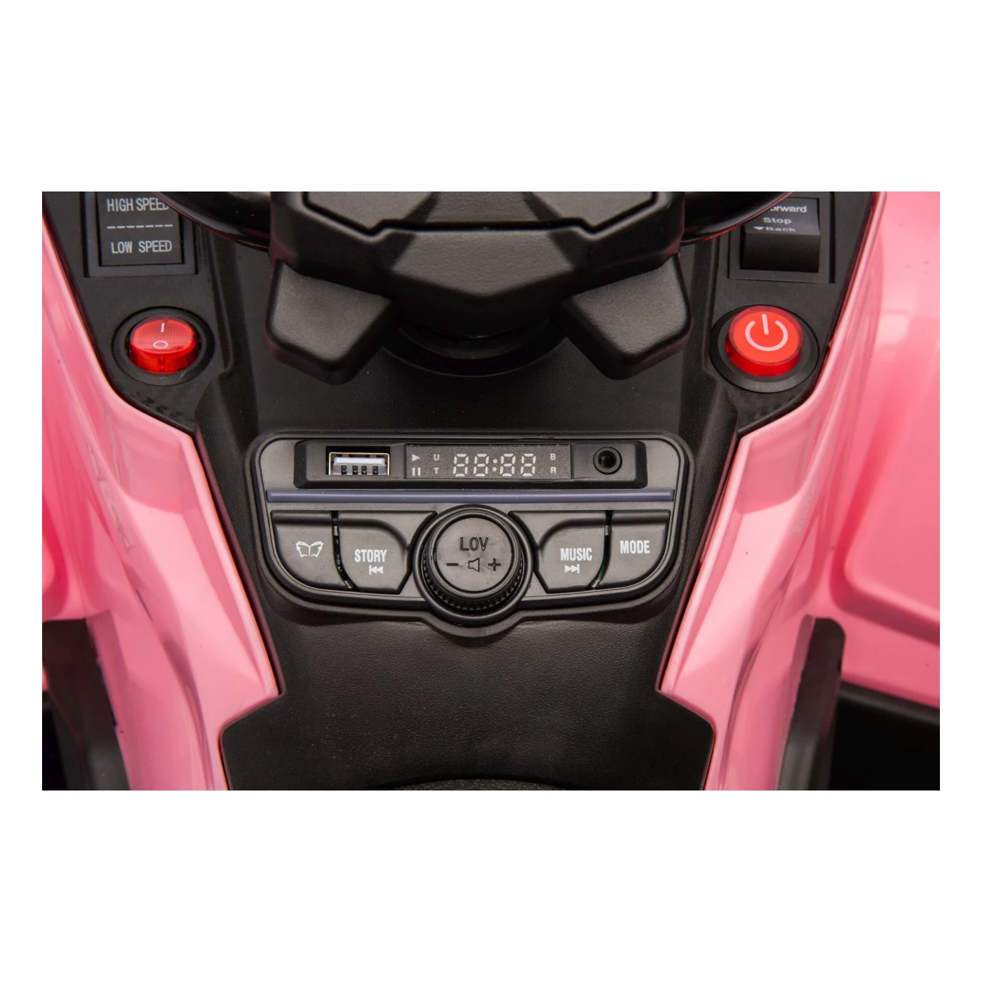 - Enostavno polnjenje: Baterijo je enostavno napolniti, indikator polnjenja pa prikazuje, kdaj je štirikolesnik pripravljen za uporabo.