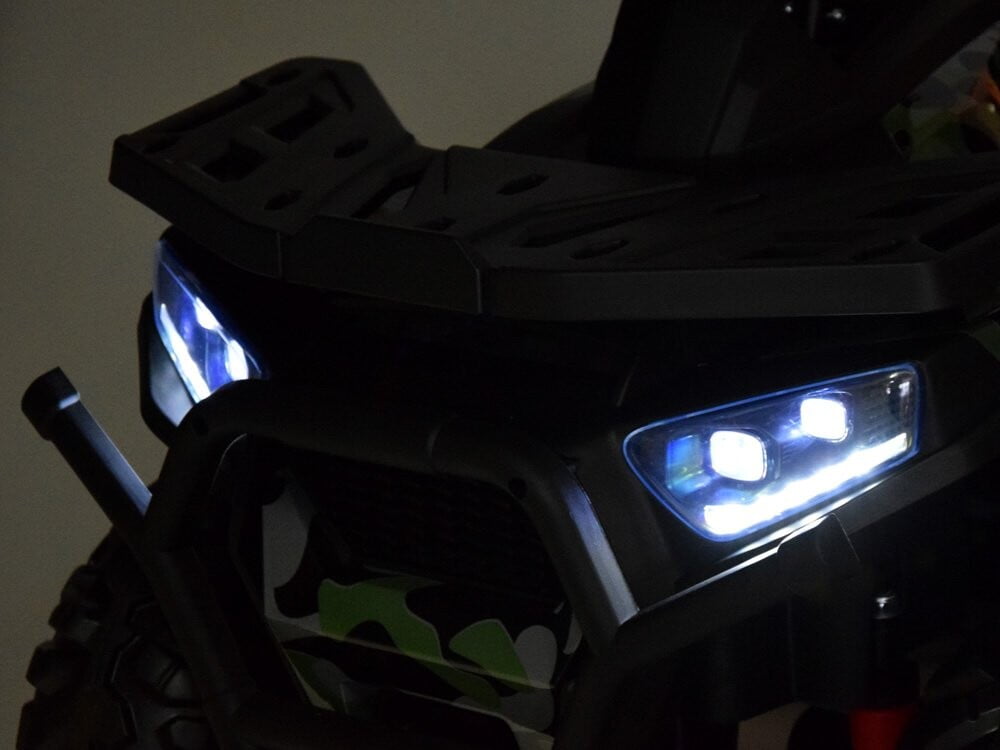 Štirikolesnik XMX607 – puščavska nevihta – najrobustnejši štirikolesnik v ponudbi s pogonom 4×4. Vgrajen MP3 priključek, z možnostjo nastavitve zvoka. Možnost odpiranja vrat. Zahvaljujoč močnim elektromotorjem lahko avtomobilček pelje otroka, težkega do 50 kg. Vgrajene LED luči.