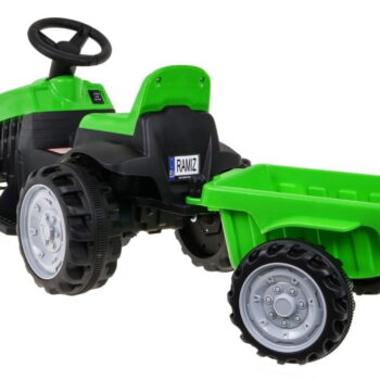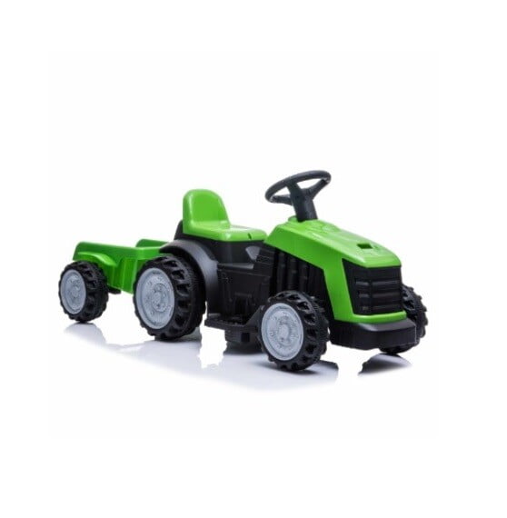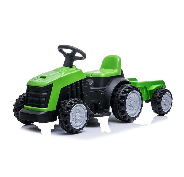 Traktor je opremljen z: – baterijo 6V / 4,5Ah – motorjem: 1x22W – polnilnikom – enoosno prikolico – pogonom na dve kolesi – največja obremenitev: 20 kg. – Največja hitrost: 3 km/h. – Dimenzije: 109 x 40,5 x 43 (cm). – Dimenzije embalaže: 71 x 41,5 x 43 (cm). – Starost: od 2 let do 6 let – Teža: 17 kg.