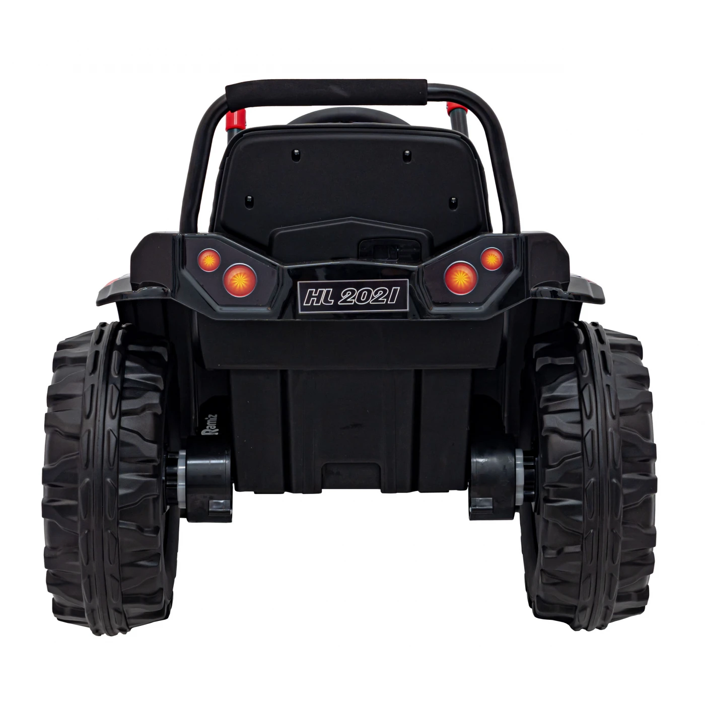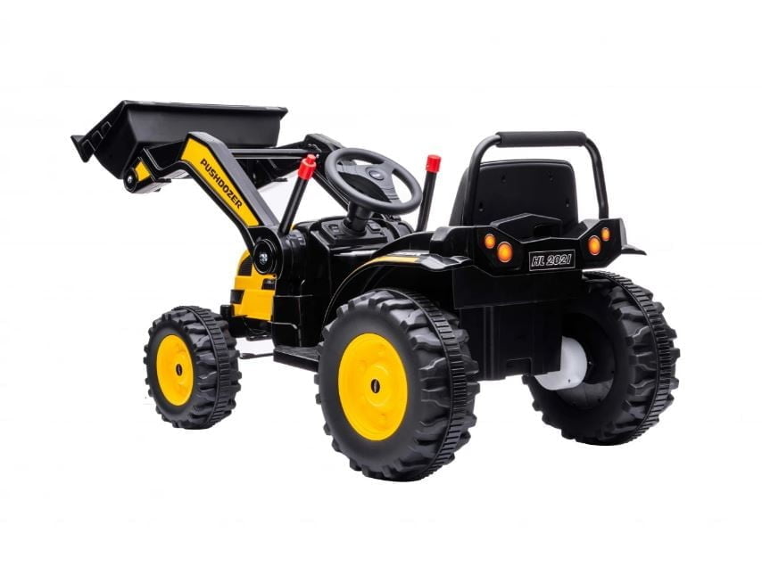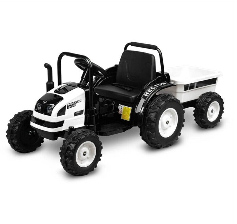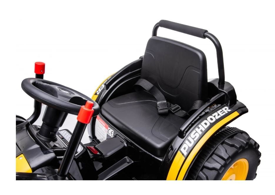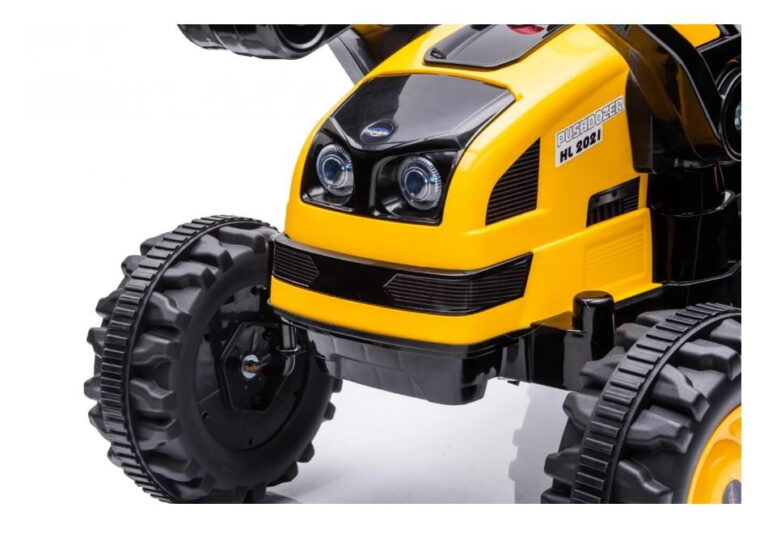 Otroška različica traktorja na baterije izpolnjuje vse varnostne zahteve. Ima varnostne pasove in funkcijo počasnega zagona, zahvaljujoč kateri se bo traktor začel voziti počasi in brez sunkov. Za udobno vožnjo po različnih terenih so kolesa traktorja izdelana iz pene EVA. Komplet vsebuje tudi daljinski upravljalnik, s katerim lahko traktor usmerjate v katero koli smer, popravljate otrokovo vožnjo in ga po potrebi takoj ustavite.